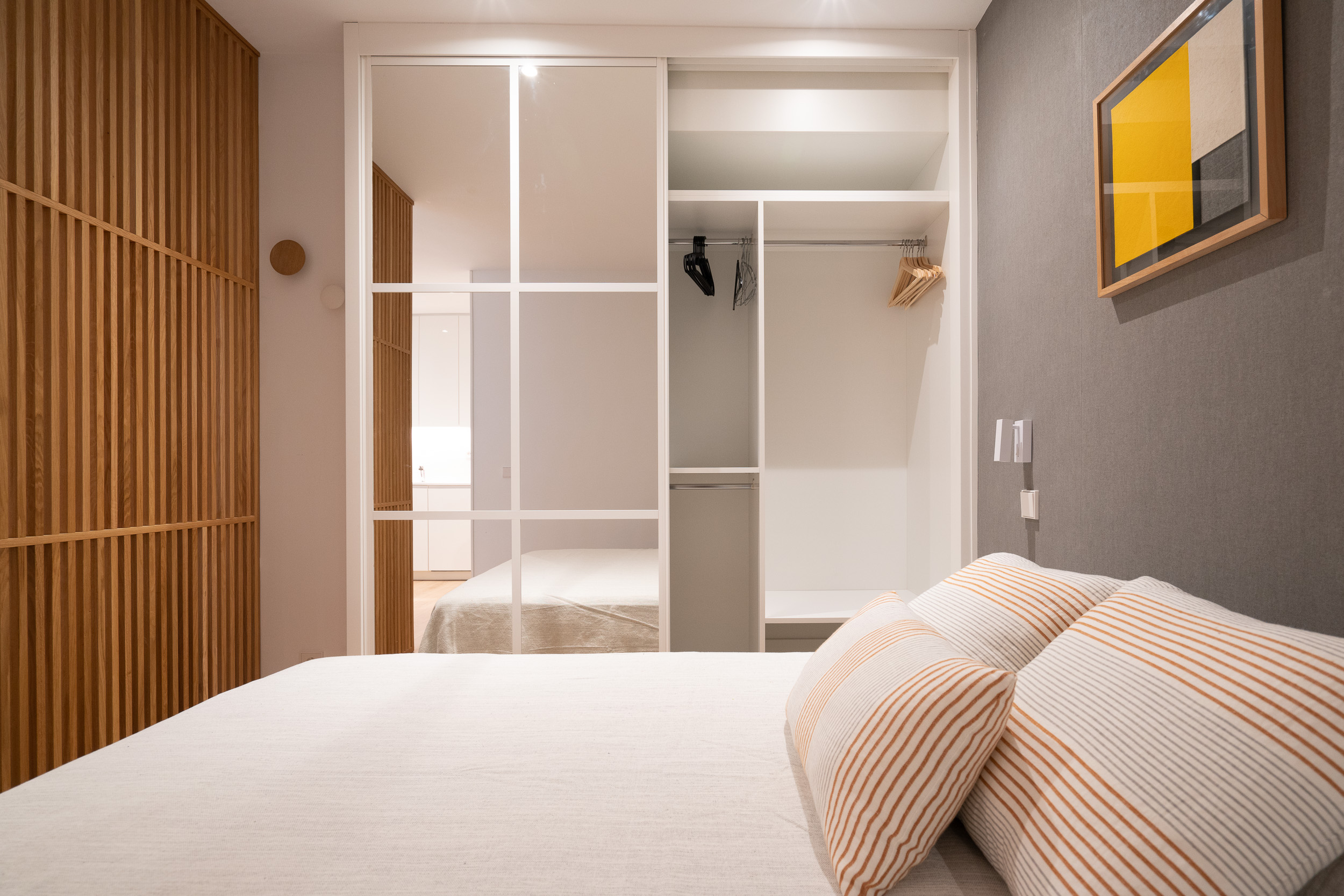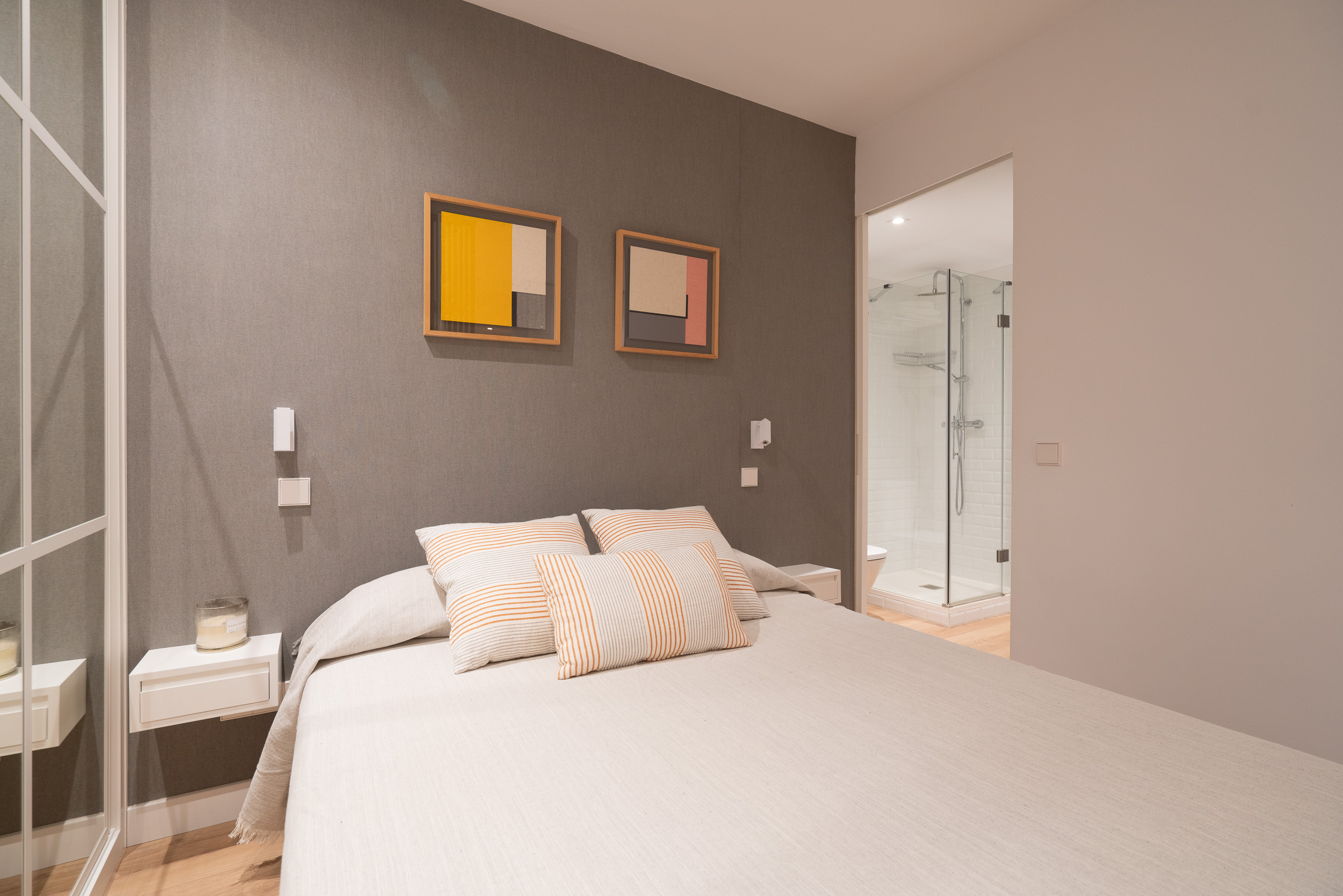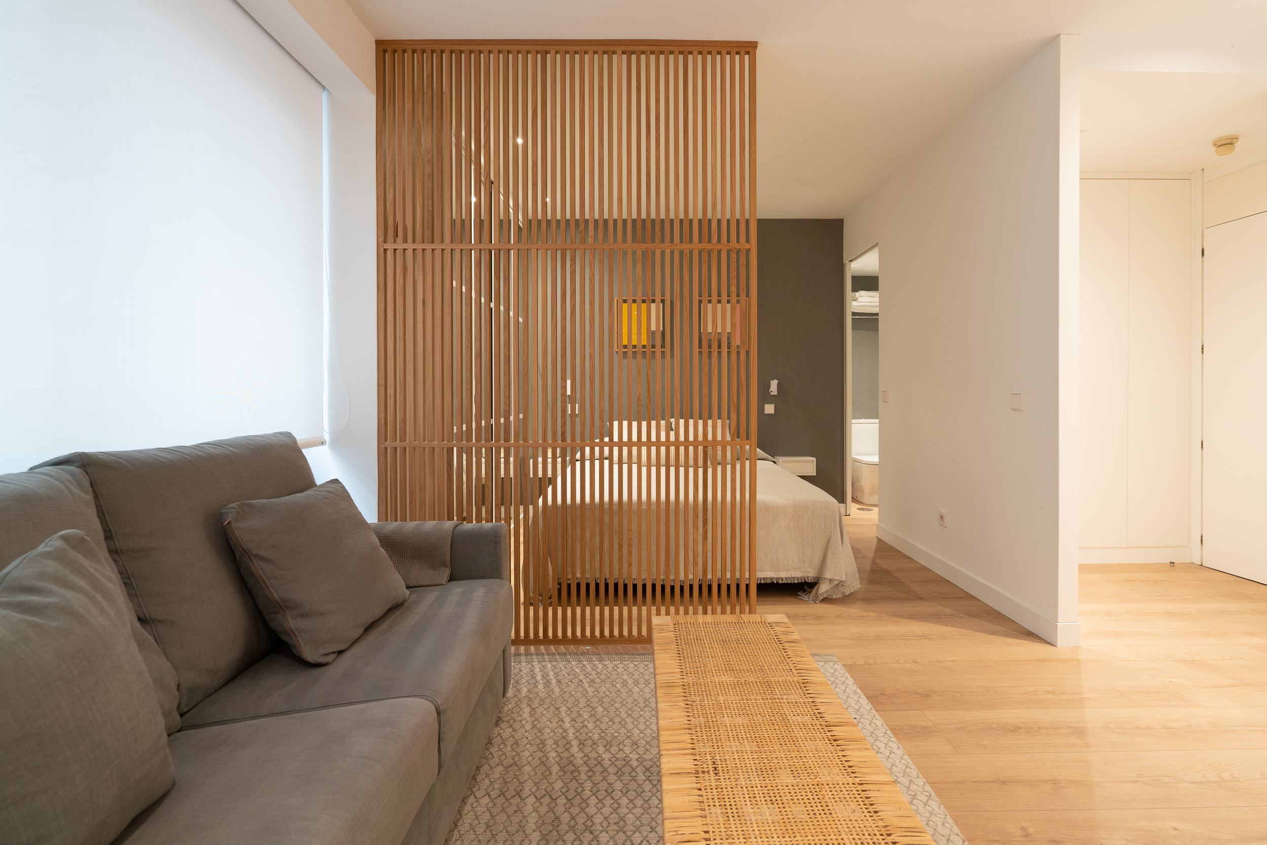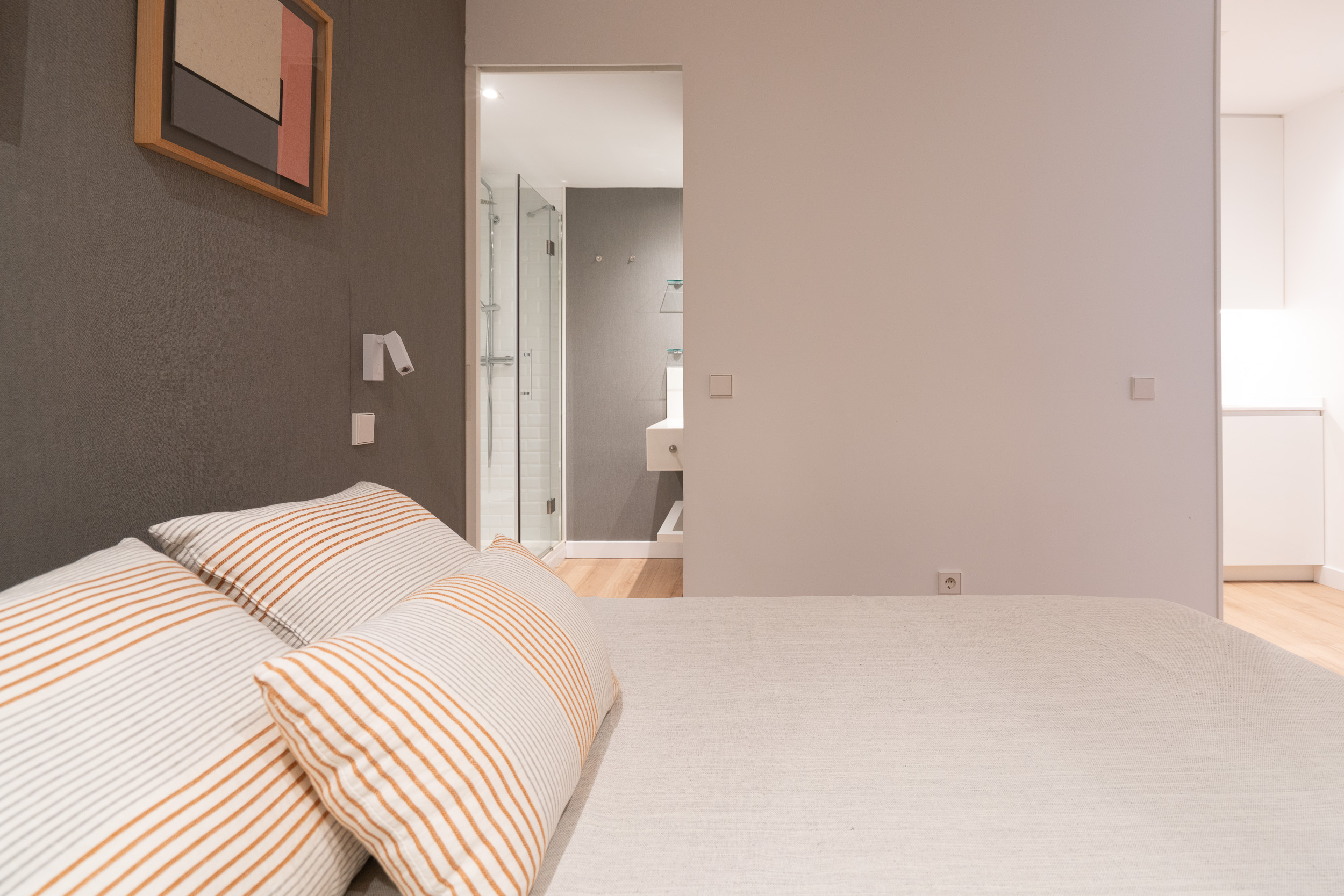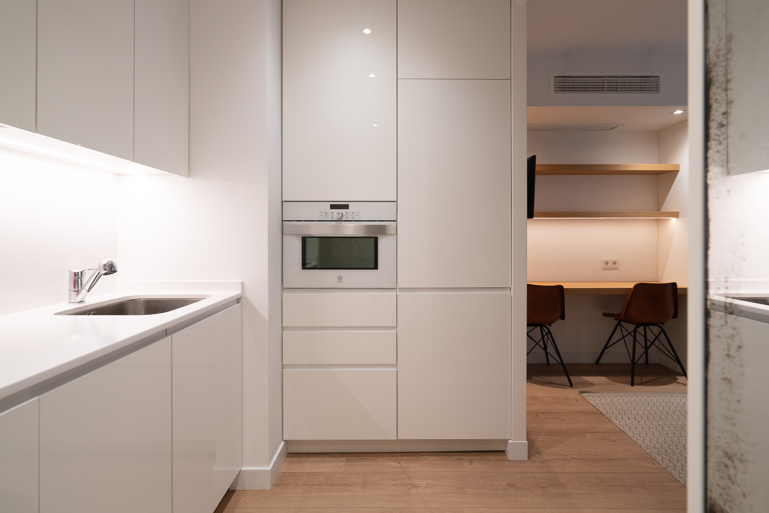 Impecable apartamento-estudio, reformado en el Centro Colón. La zona del salón dispone de sofá, convertible en sofá cama, mesita baja y zona de trabajo. Pequeña cocina con todo lo necesario, estupenda nevera con congelador, lavadora, vitro cerámica y microondas. El dormitorio se encuentra dividido de la zona del salón, por unas modernas lamas de madera y comunicado con el cuarto de baño. Grandes armarios empotrados. Calefacción, aire acondicionado y agua caliente individual. ¡Gran seguridad! Portería 24 horas.