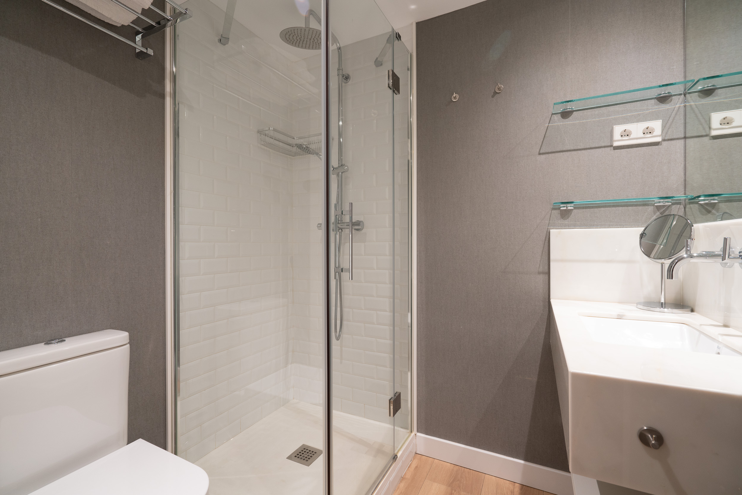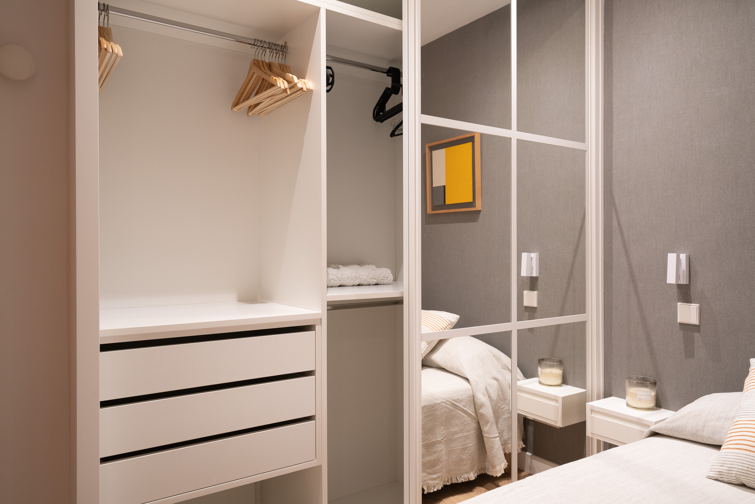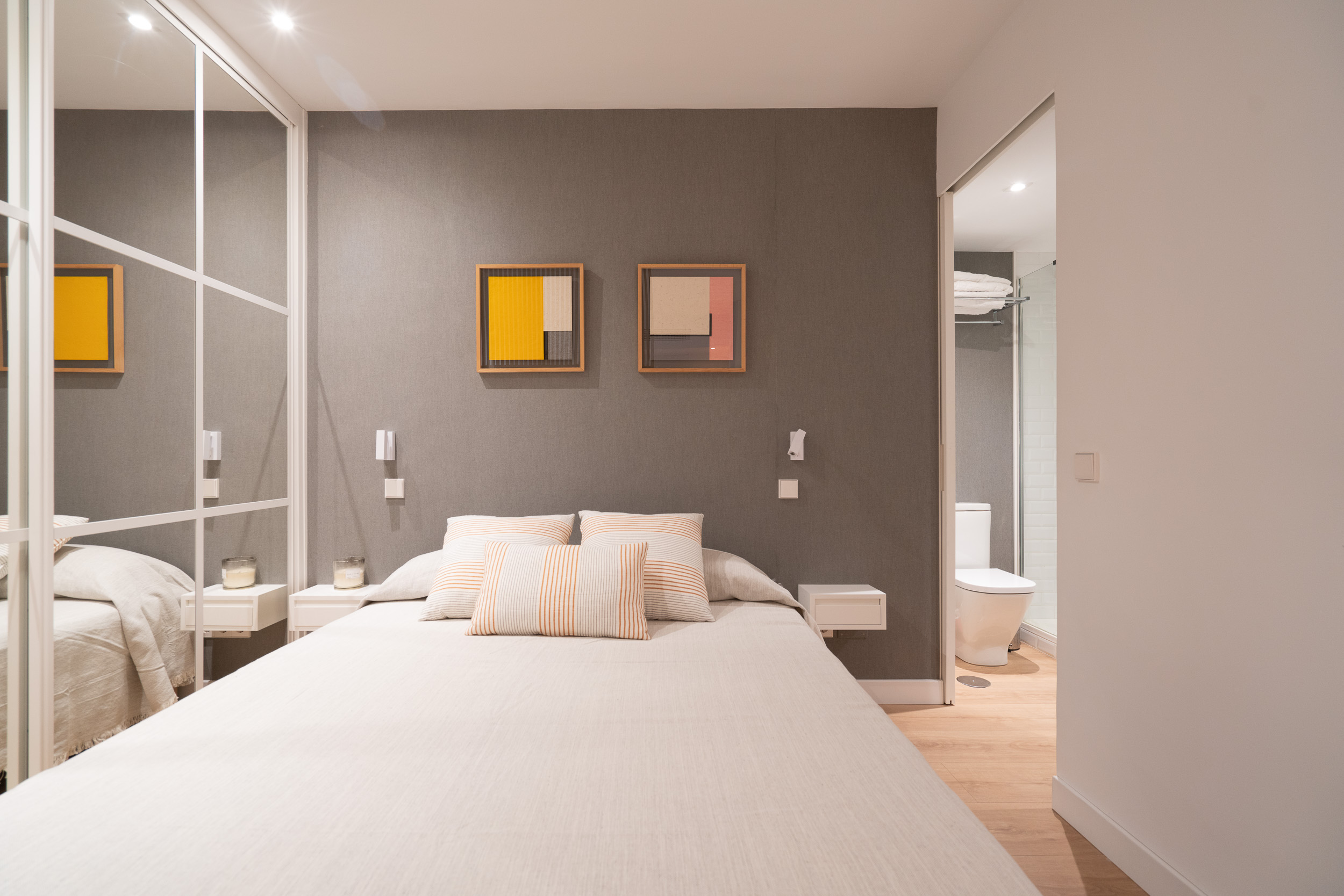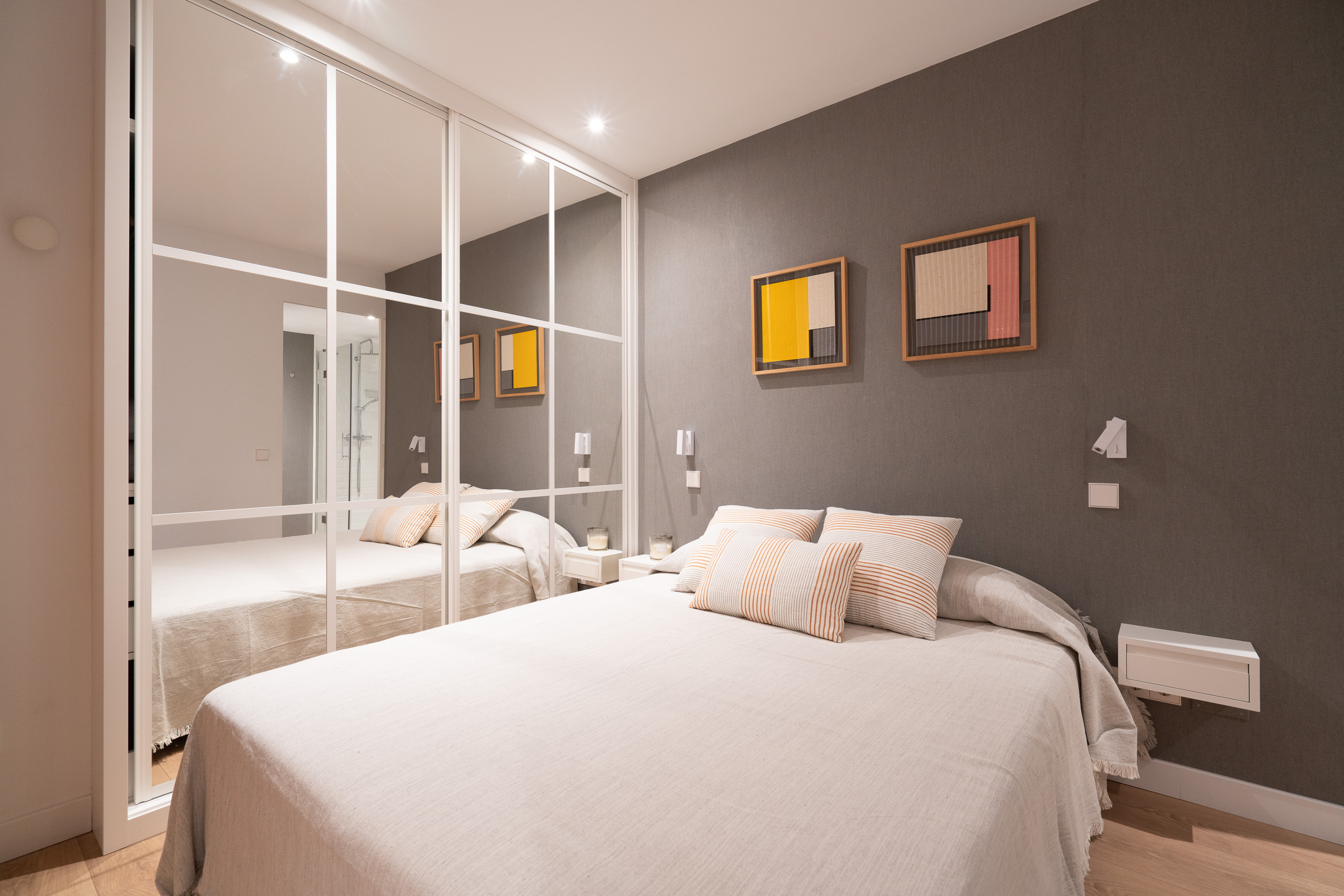 Impecable apartamento-estudio, reformado en el Centro Colón. La zona del salón dispone de sofá, convertible en sofá cama, mesita baja y zona de trabajo. Pequeña cocina con todo lo necesario, estupenda nevera con congelador, lavadora, vitro cerámica y microondas. El dormitorio se encuentra dividido de la zona del salón, por unas modernas lamas de madera y comunicado con el cuarto de baño. Grandes armarios empotrados. Calefacción, aire acondicionado y agua caliente individual. ¡Gran seguridad! Portería 24 horas.