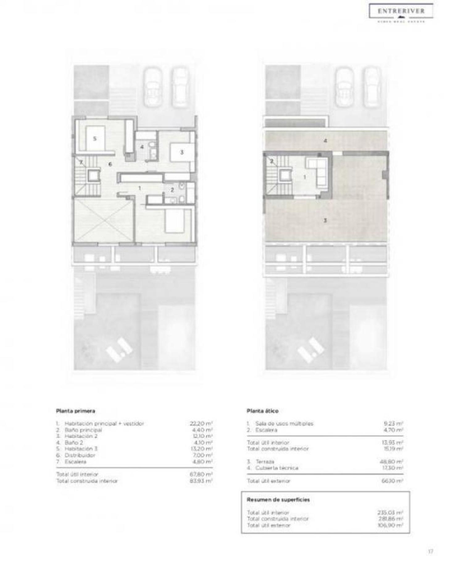 Extraordinario chalet adosado, dotado de excelentes calidades y ultima tecnología domótica. El chalet cuenta con dos plantas, ático y sótano. En la planta baja es donde encontramos la zona de recibo, cuenta con un espacioso hall de entrada, aseo de cortesía y cocina con acceso directo al comedor. Salón comedor con amplios ventanales que nos llevan al porche cubierto, por el que se accede al jardín y piscina privados. En la primera planta podemos encontrar tres dormitorios, uno de ellos con vestidor y baño exclusivo. Lo otros dos dormitorios, com amplios armarios, cada uno on su cuarto de baño. En el ático encontramos un espacio polivalente, al que se le puede dar el uso que sus propietarios necesiten, cuarto de juegos, despacho, otro dormitorio. Cuenta también con una espaciosa terraza. En la planta sótano encontramos el área de servicio de la casa, cuarto de servicio con su cuarto de baño, un espacio polivalente, cuarto de máquinas, y dos espaciosas plazas de garaje.