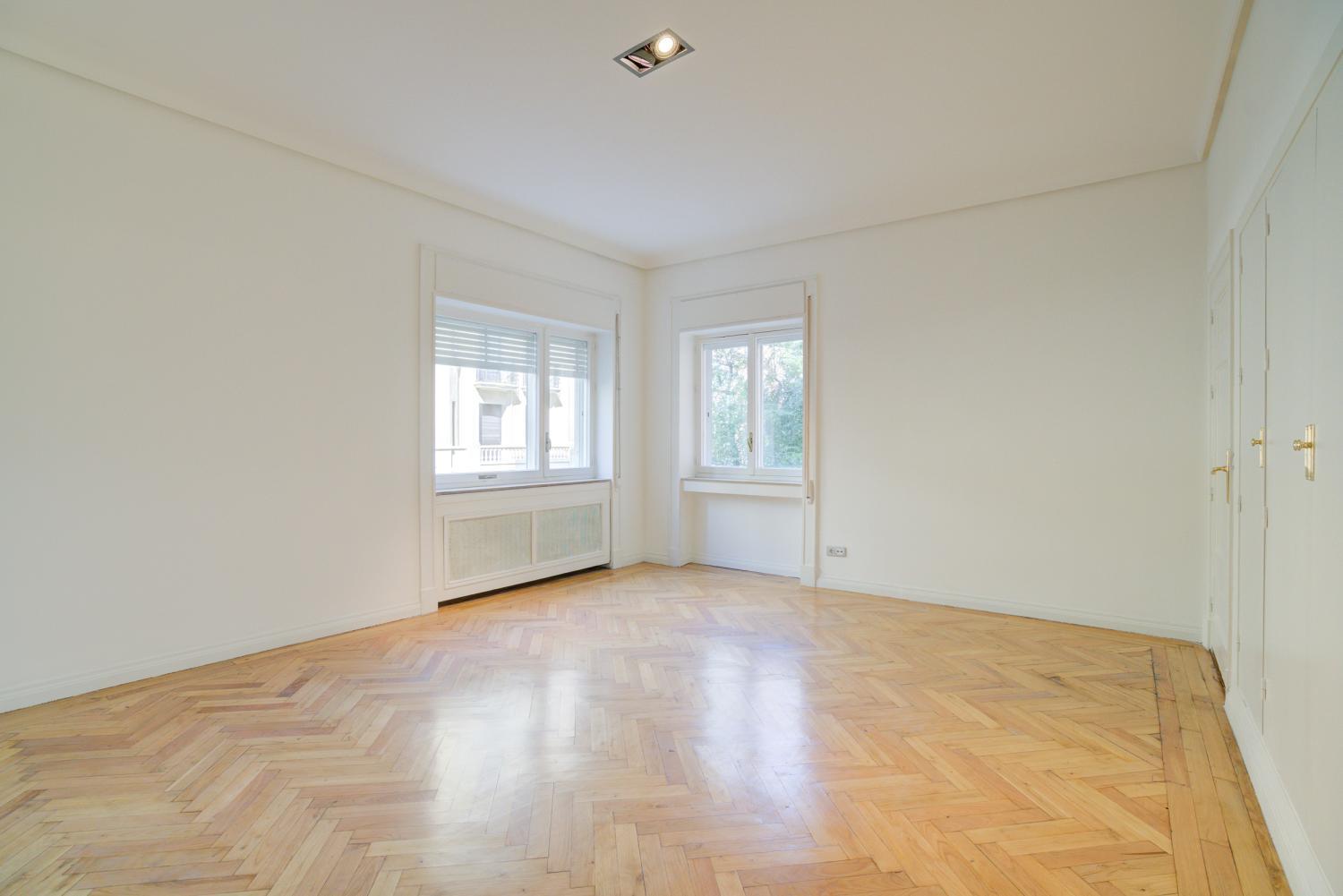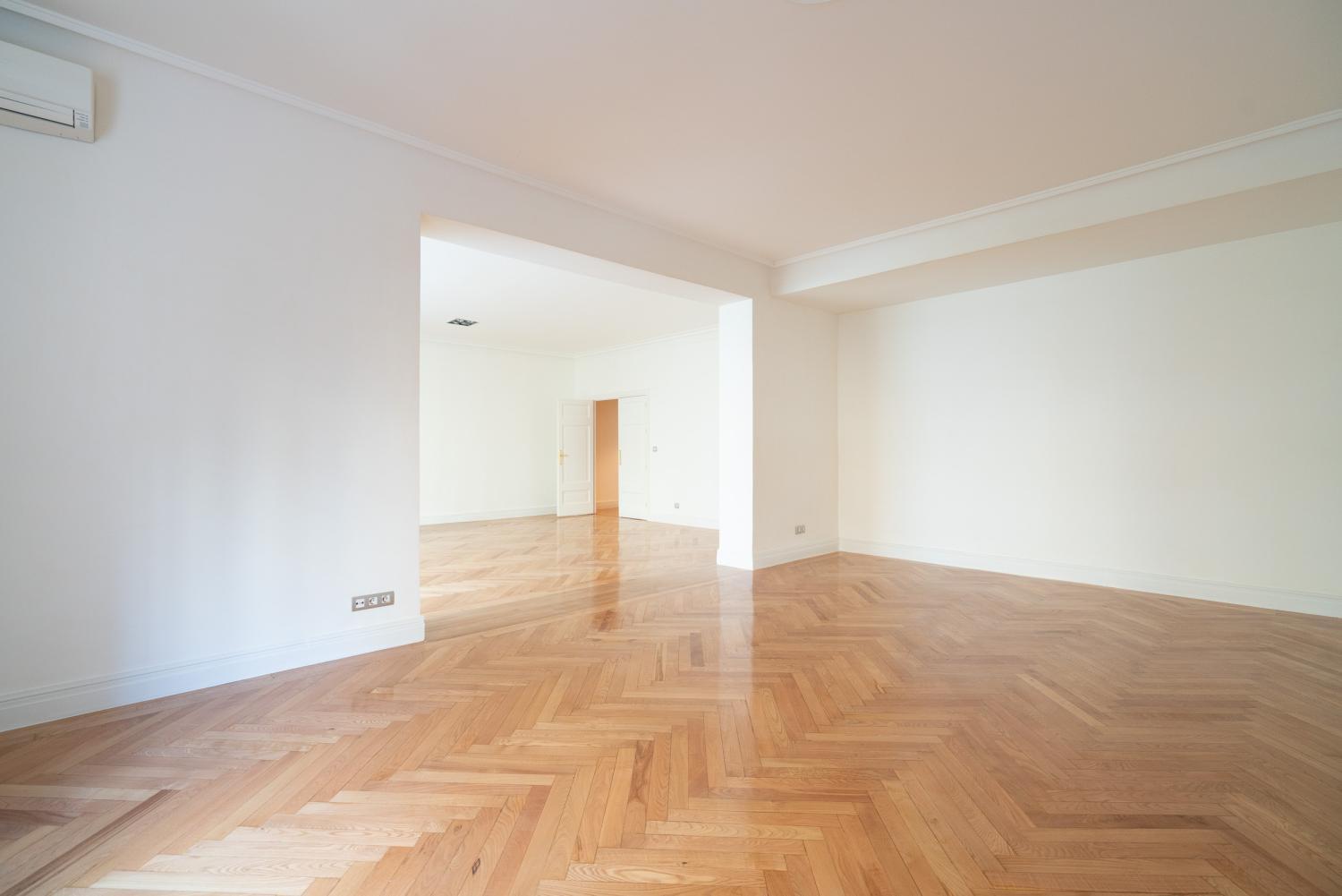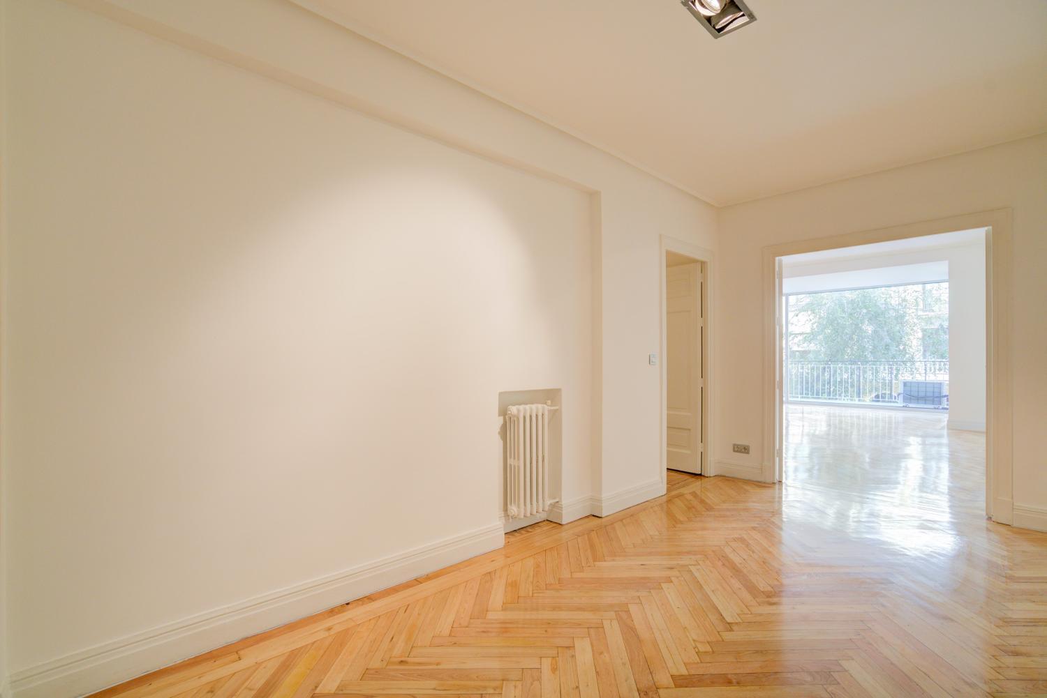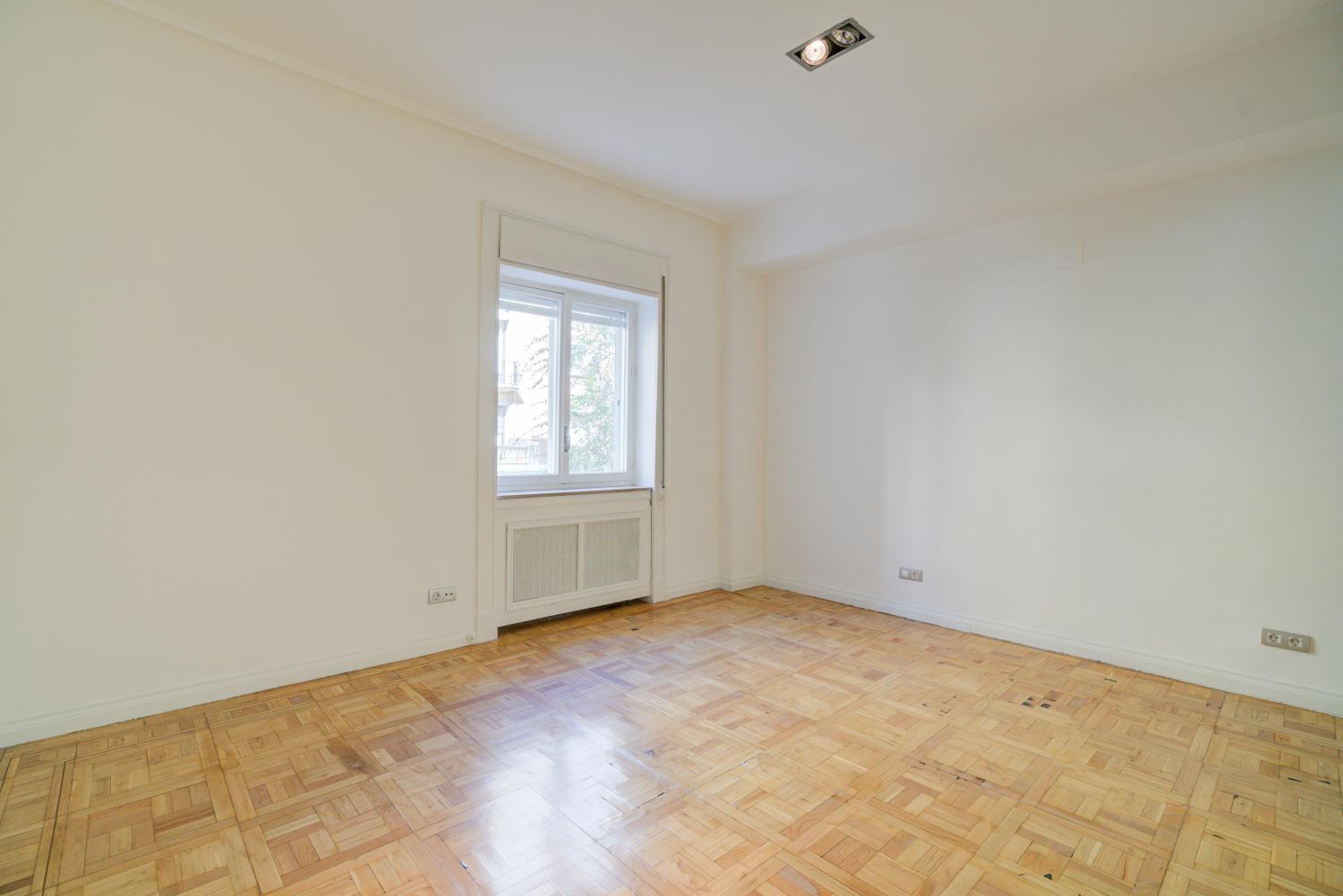 Estupendo piso en la mejor zona del barrio de Almagro. Hall de entrada amplio, salón y comedor comunicados con grandes ventanales que dan a arboles, y muy luminoso. Dormitorio principal en suite con vestidor y baño, con magnífica luz y vistas a verde. Oreos dos dormitorios, uno de ellos con una pequeña terraza, que comparten baño, aseo de visitas, y un 4º dormitorio en suite. Todas las estancias son de un tamaño muy amplio. Calefacción y agua caliente central no incluida en el precio. Aire acondicionado Garaje en el edificio y trastero. Portero.