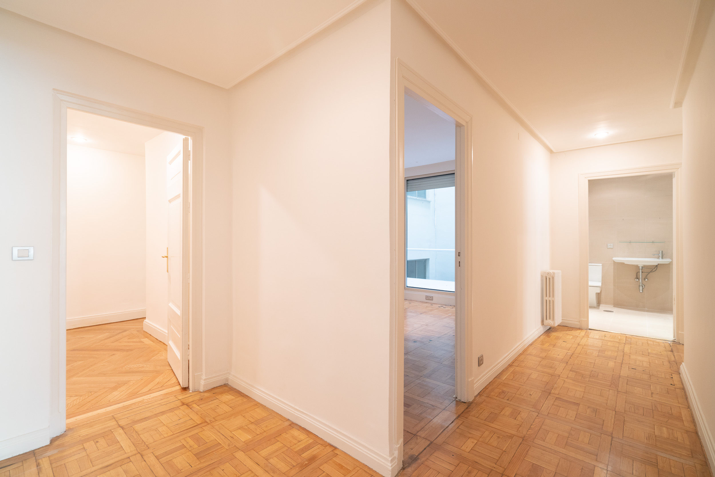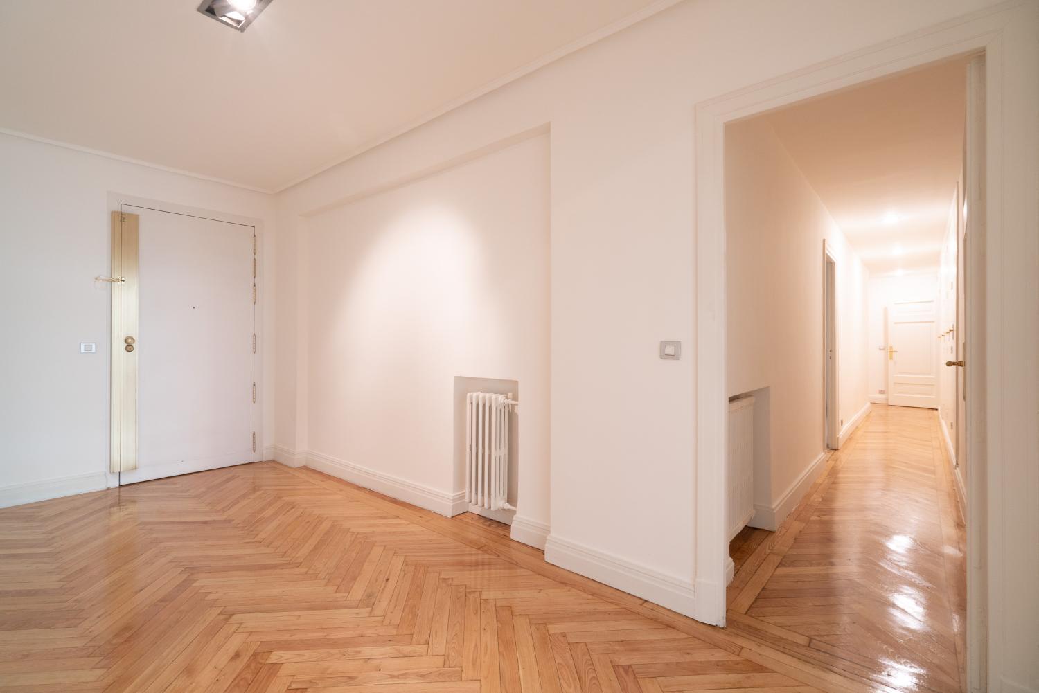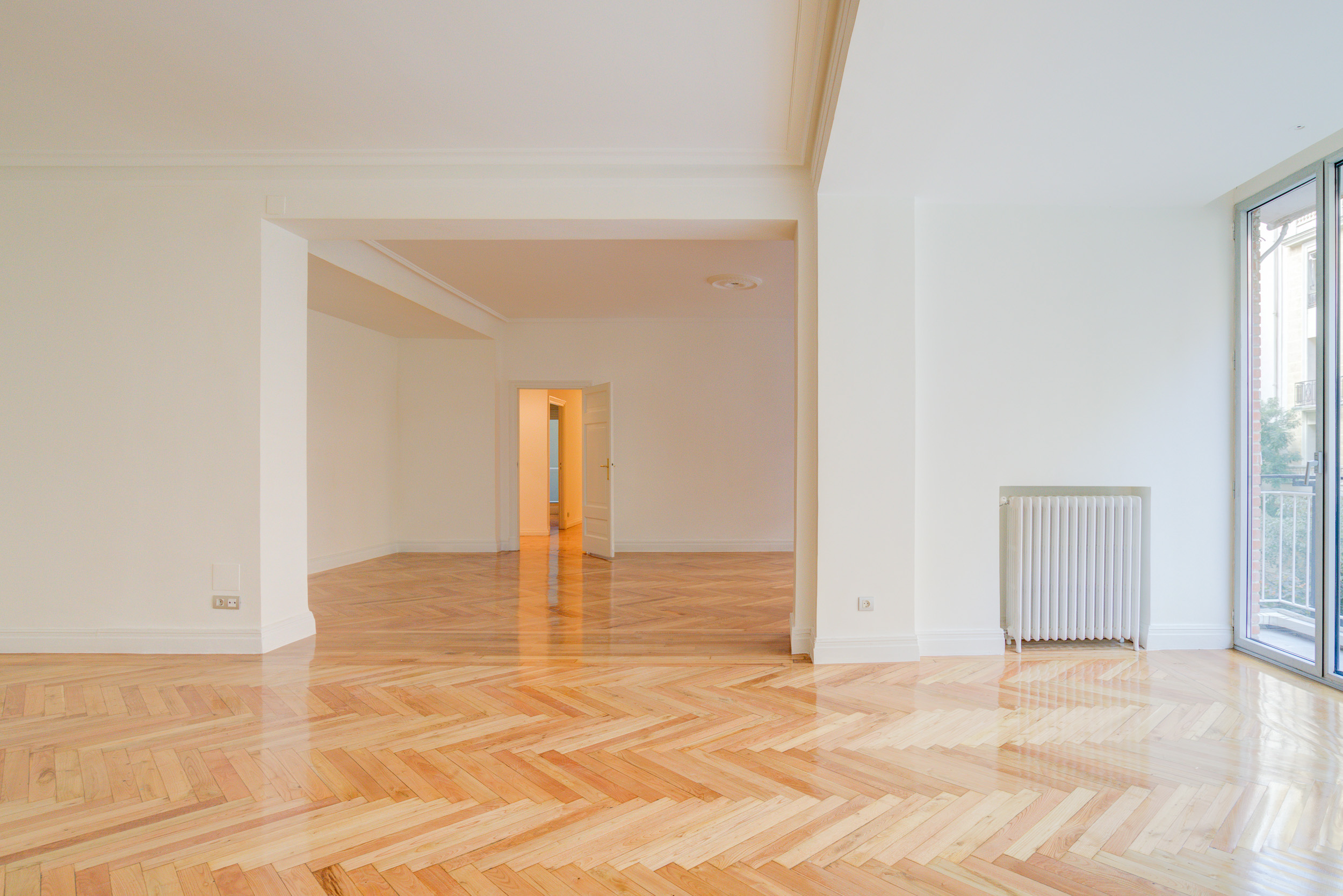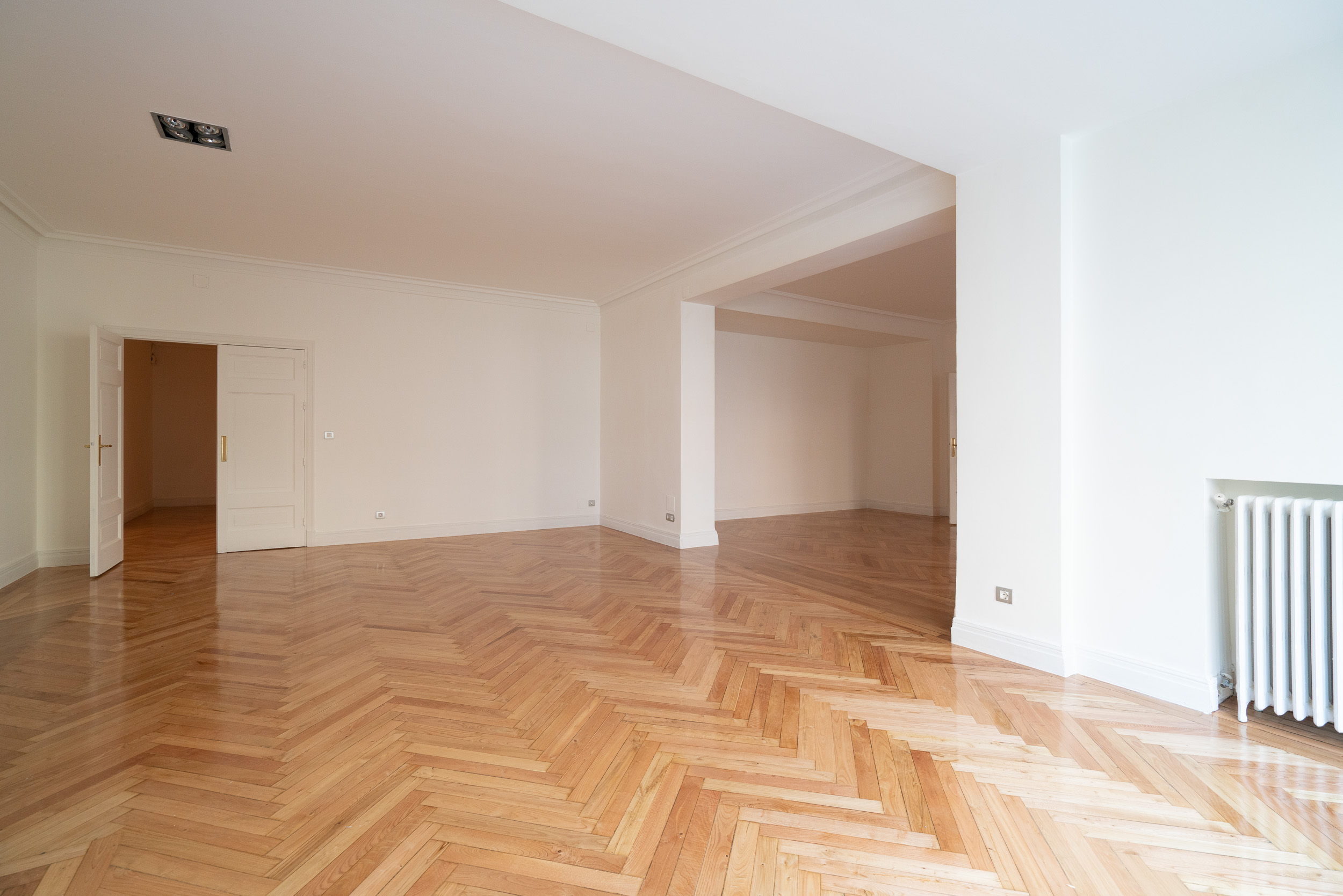Estupendo piso en la mejor zona del barrio de Almagro. Hall de entrada amplio, salón y comedor comunicados con grandes ventanales que dan a arboles, y muy luminoso. Dormitorio principal en suite con vestidor y baño, con magnífica luz y vistas a verde. Oreos dos dormitorios, uno de ellos con una pequeña terraza, que comparten baño, aseo de visitas, y un 4º dormitorio en suite. Todas las estancias son de un tamaño muy amplio. Calefacción y agua caliente central no incluida en el precio. Aire acondicionado Garaje en el edificio y trastero. Portero.