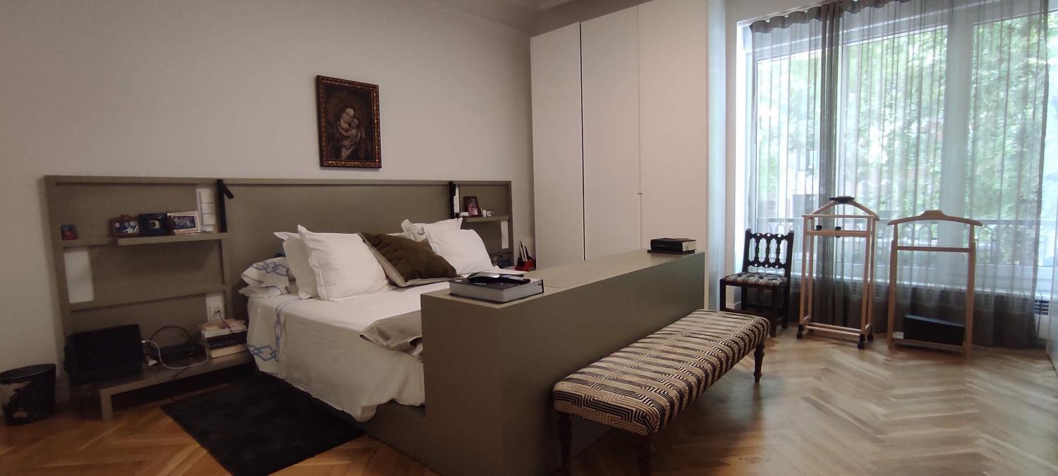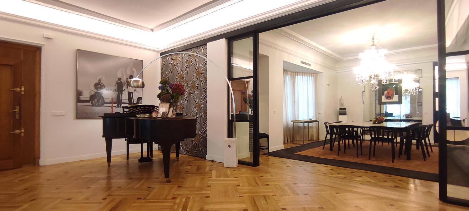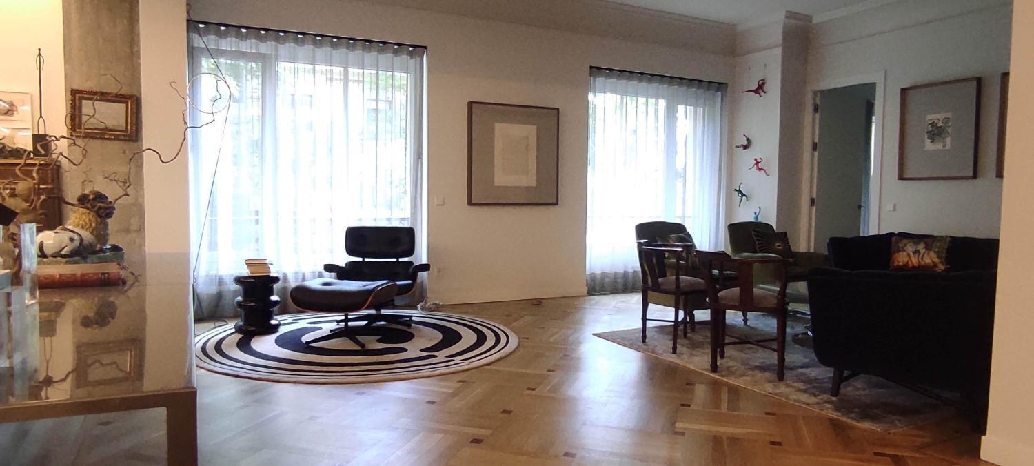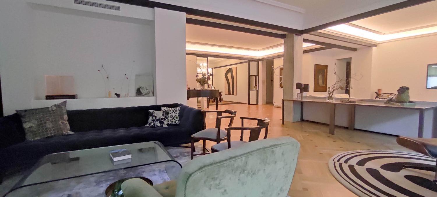 Impresionante vivienda con orientación sur y con magnífica decoración artística y de diseño. Recién reformado. Enorme hall de entrada que se abre a un lado a dos salones y una zona de lectura y por otro lado a un gran comedor. Desde este último pasamos a un pasillo que abre a la cocina y la zona de lavado y cuarto de servicio con su baño. Cuenta con 5 habitaciones con baño en suite. 2 de ellas comparten baño. Cuenta con plaza de garaje de acceso directo. Precioso portal. Portero.