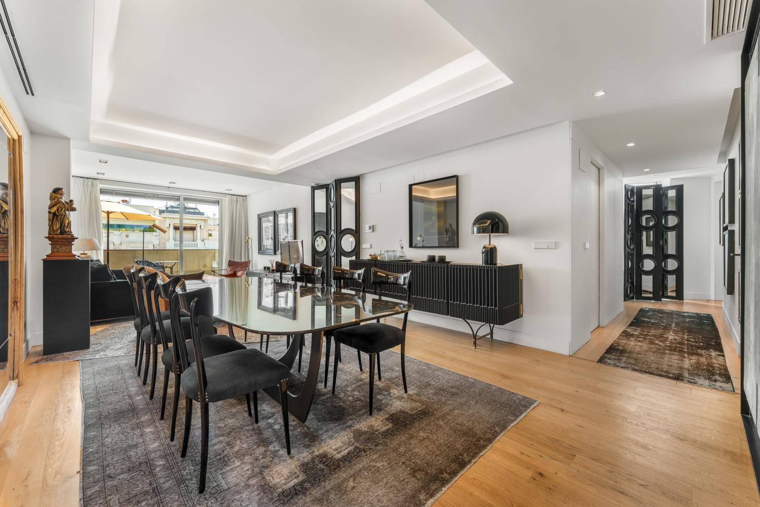 La calle es Calle Goya 63, sexta planta Ubicada en el corazón del barrio de Salamanca en Madrid, una de las calles más icónicas y cotizadas de la ciudad, esta extraordinaria propiedad redefine el lujo contemporáneo. Con una superficie total de 355 m² distribuidos en dos niveles —180 m² de vivienda principal con una terraza de 15 m² y un espectacular rooftop de 160 m²— este ático ofrece un estilo de vida único en una de las zonas más exclusivas de la capital. En el interior, la vivienda cuenta con cuatro dormitorios en suite, un aseo de cortesía, una zona de lavandería independiente y una cocina de última generación totalmente equipada con electrodomésticos Gaggenau. El confort se eleva gracias a la calefacción por suelo radiante, aire acondicionado con sistema de aerotermia, tecnología domótica integrada y un sistema de seguridad de alta gama. El verdadero protagonista es la impresionante terraza en la azotea: un oasis privado de 160 m² que incluye una piscina climatizada de agua salada (8x4x1,6 m), un bar exterior totalmente equipado con frigoríficos, fregadero y lavavajillas, una pérgola resistente al viento y zonas diseñadas cuidadosamente para relajarse y disfrutar. Todo ello acompañado de iluminación ambiental, sistema de sonido y conectividad Wi-Fi total. La propiedad incluye dos plazas de aparcamiento privadas y cuenta con servicio de portería en un exclusivo edificio de tan solo 12 vecinos, lo que garantiza privacidad, seguridad y tranquilidad en pleno centro de Madrid. Una oportunidad única de adquirir un ático donde el diseño, la tecnología y los espacios exteriores se integran en perfecta armonía.