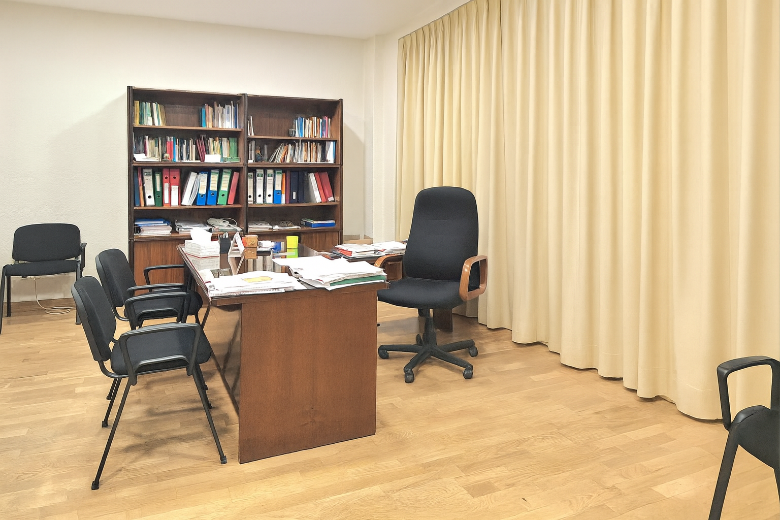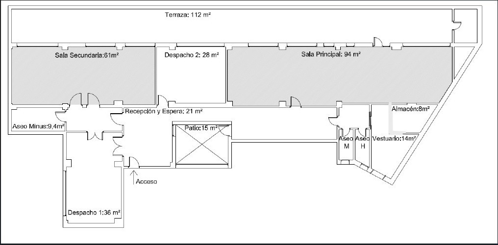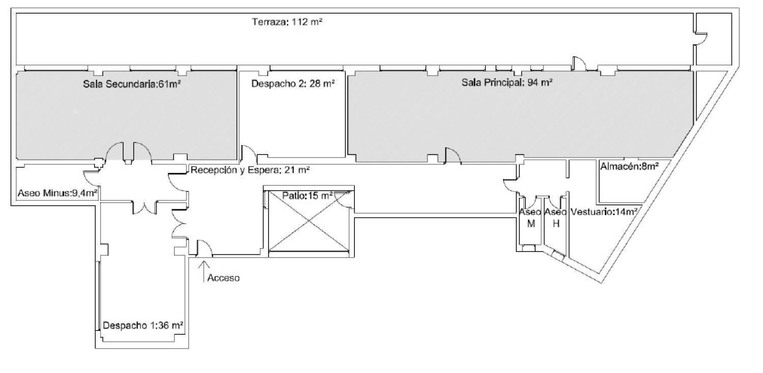 Este inmueble de 303 m² está distribuido en una sola planta y cuenta con varios espacios bien definidos. Al ingresar, se accede a un amplio hall de entrada de 22 m². La oficina dispone de dos aseos generales, un aseo adaptado para personas con movilidad reducida, un vestuario y un almacén. El espacio de trabajo se distribuye en varias salas y despachos: Una sala/despacho de 36 m². Otra sala/despacho de 61 m². Otra sala/despacho de 28 m². Una sala principal de 94 m² con acceso a un almacén de 8 m². Además, el inmueble cuenta con un patio de 15 m² y una terraza de 112 m², ofreciendo espacios al aire libre. La oficina posee: suministro de electricidad, suministro de agua, suministro de gas con caldera comunitaria. Radiadores en todas las salas y despachos, baños y zonas comunes. Características destacadas: Techos altos que aportan una sensación de amplitud y luminosidad. Suelos de parquet y tarima flotante, brindando un acabado elegante y cálido. Portero físico para mayor seguridad y comodidad. Calefacción central para mantener una temperatura agradable durante todo el año. Amplios ventanales que dan a un patio de uso privativo, asegurando luz natural y vistas agradables. Estado Actual: Propiedad destinada al arrendamiento Los gastos de comunidad incluyen los de las plazas de garaje.