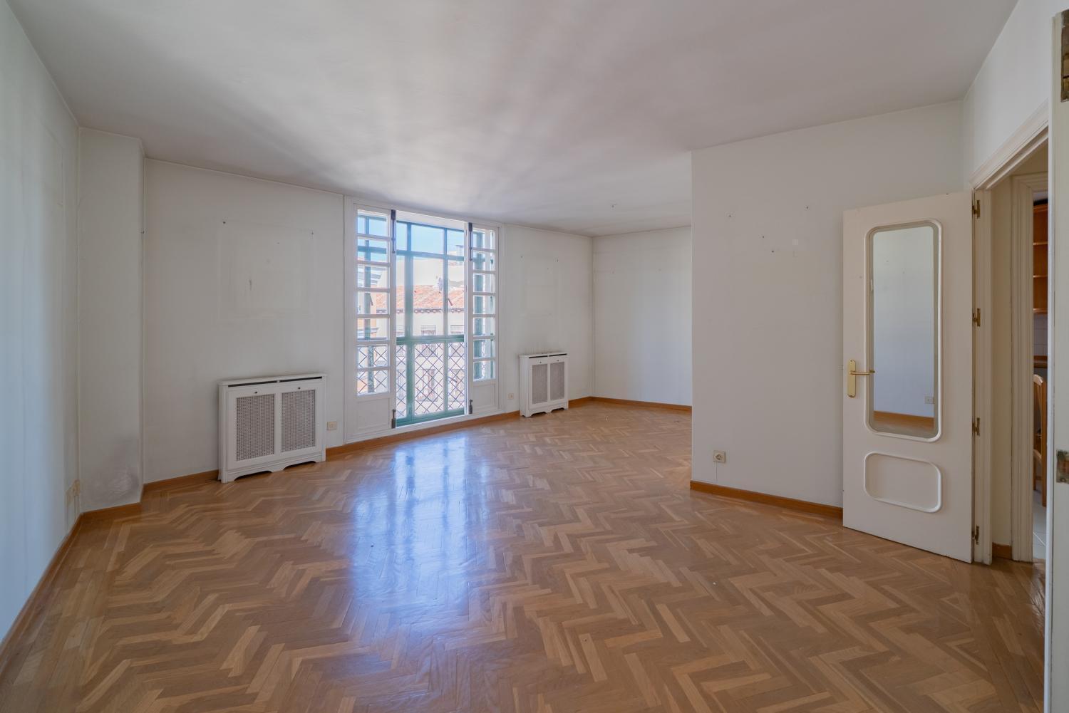 Fantástico piso exterior, super alegre y luminoso, ideal para reformar con 152 m2 según nota simple. Actualmente cuenta con 3 dormitorios y 2 baños, además de un amplio salón con salida a balcón. La vivienda ofrece múltiples posibilidades de redistribución, permitiendo adaptar los espacios a tus necesidades. Dispone de calefacción y agua caliente individual, lo que aporta comodidad y eficiencia. Además, la finca incluye una estupenda plaza de garaje nº 19 sita en la planta baja del mismo edificio.