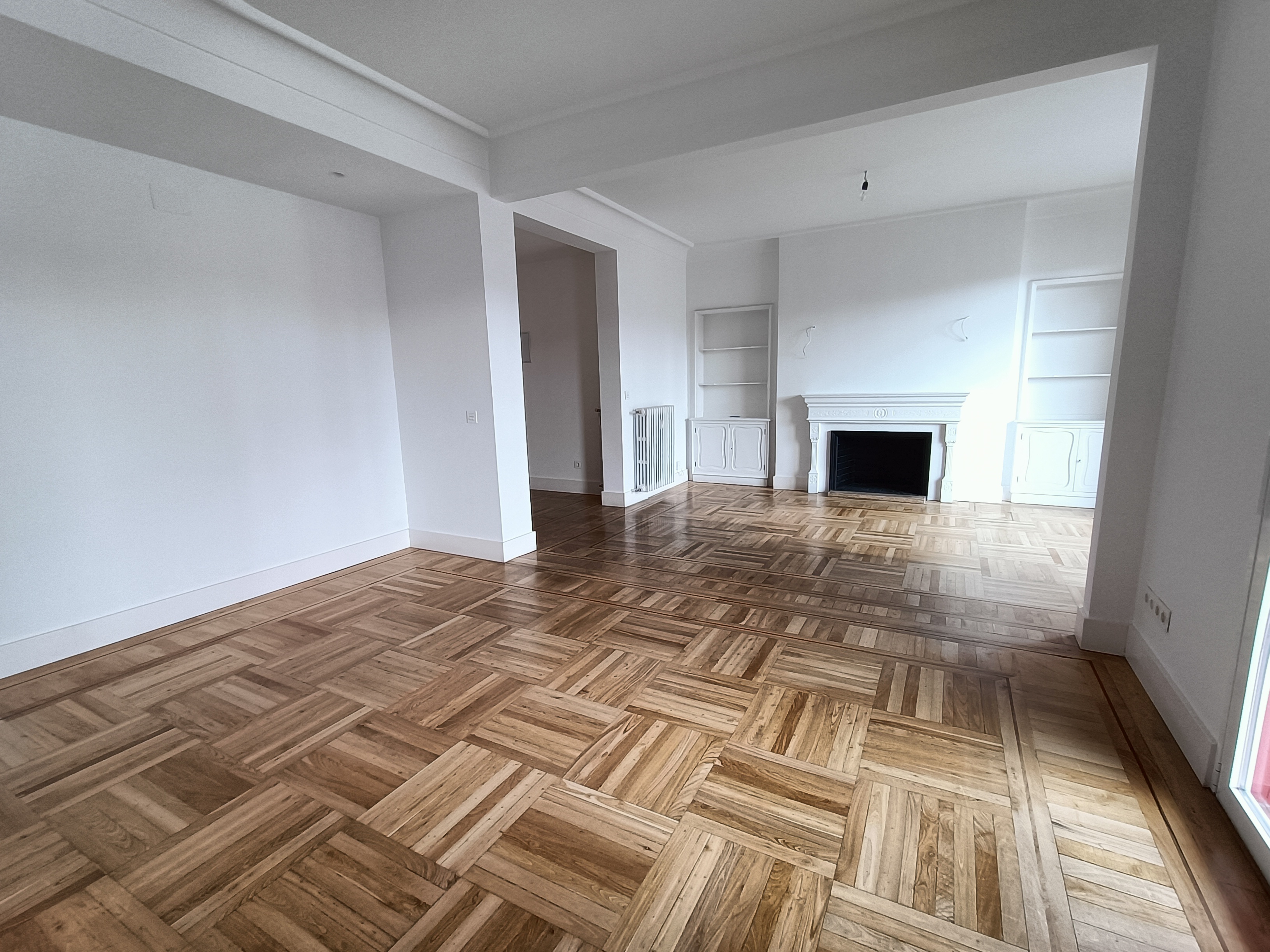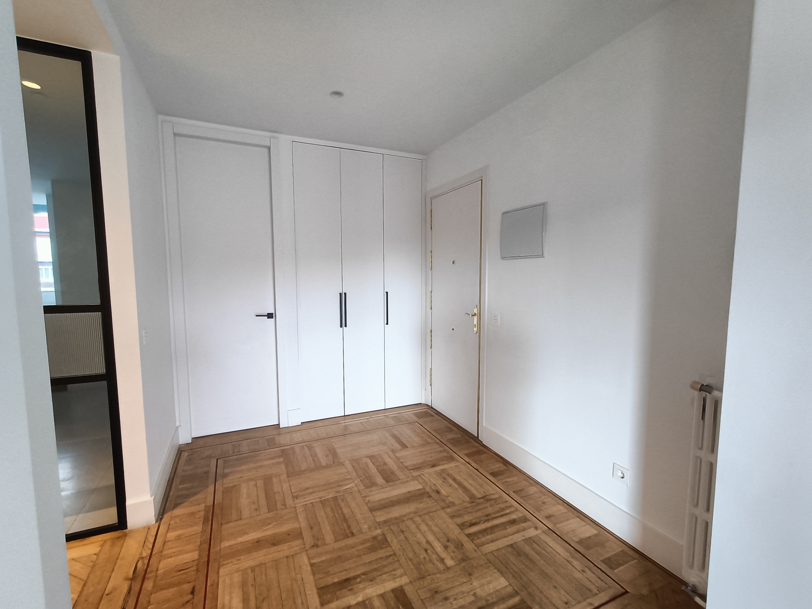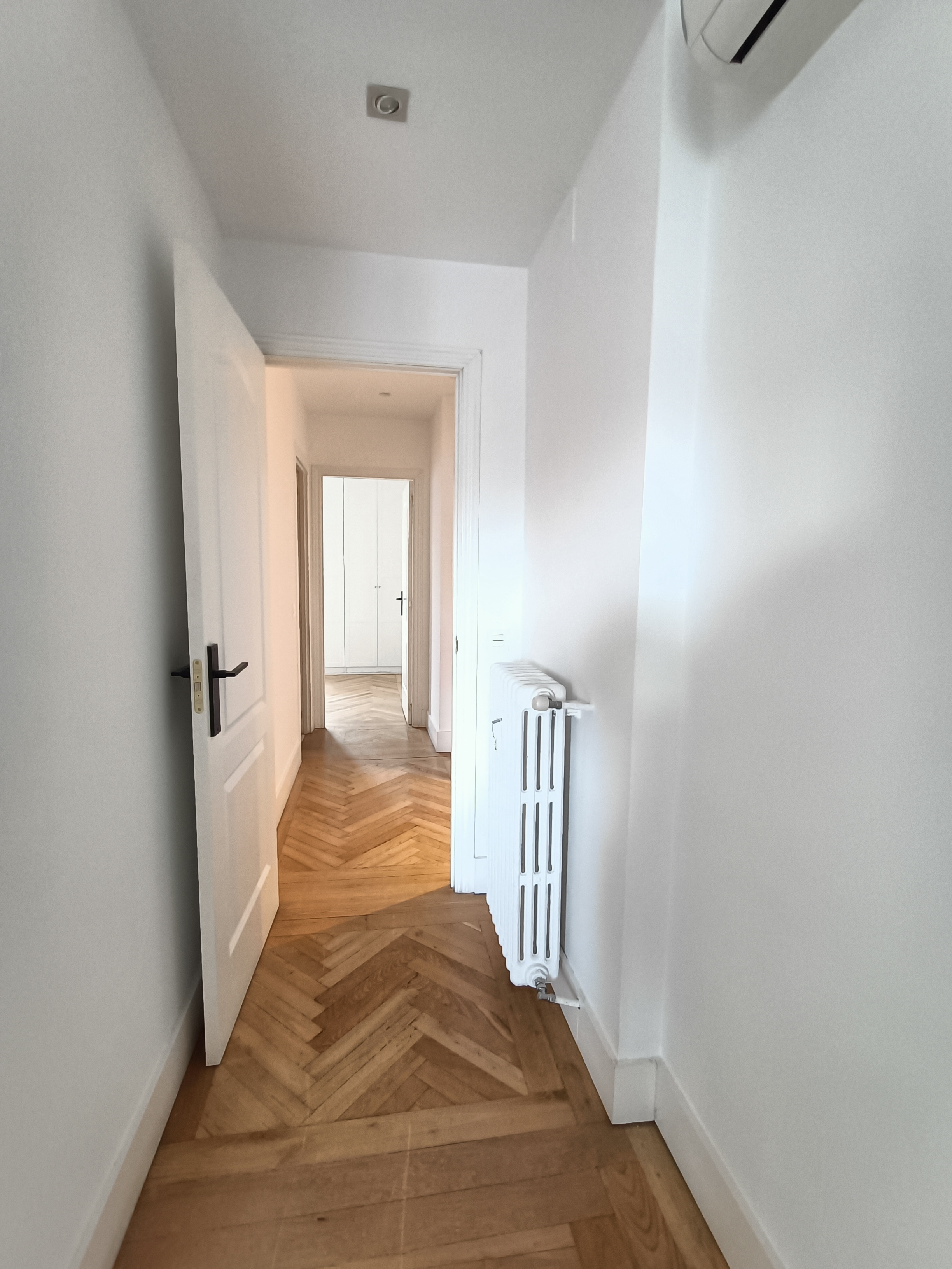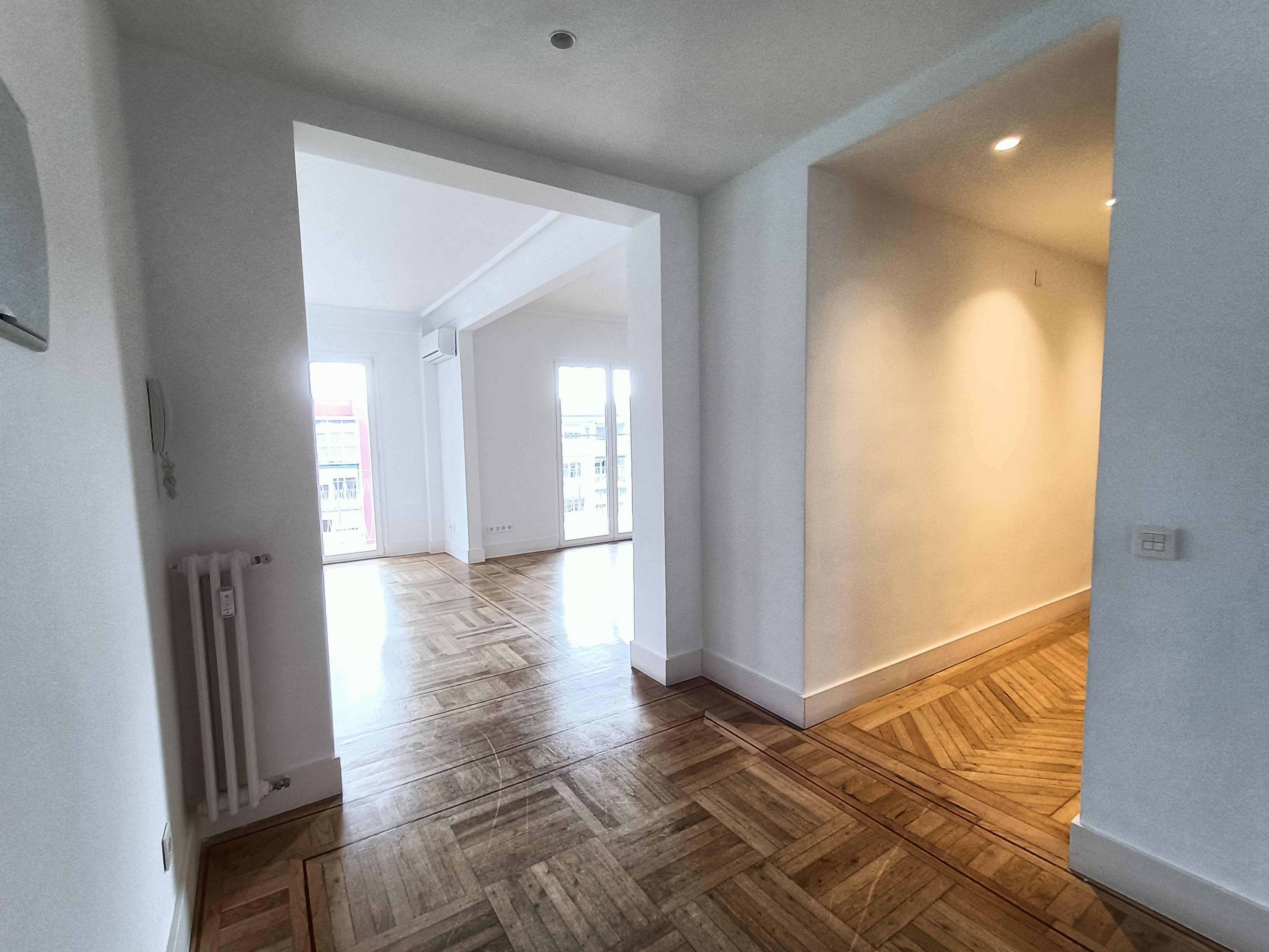 La vivienda se alquila sin amueblar y ha sido reformada recientemente, con suelos de tarima, aire acondicionado en toda la casa, calefacción y agua caliente centrales, y ascensor en el edificio.