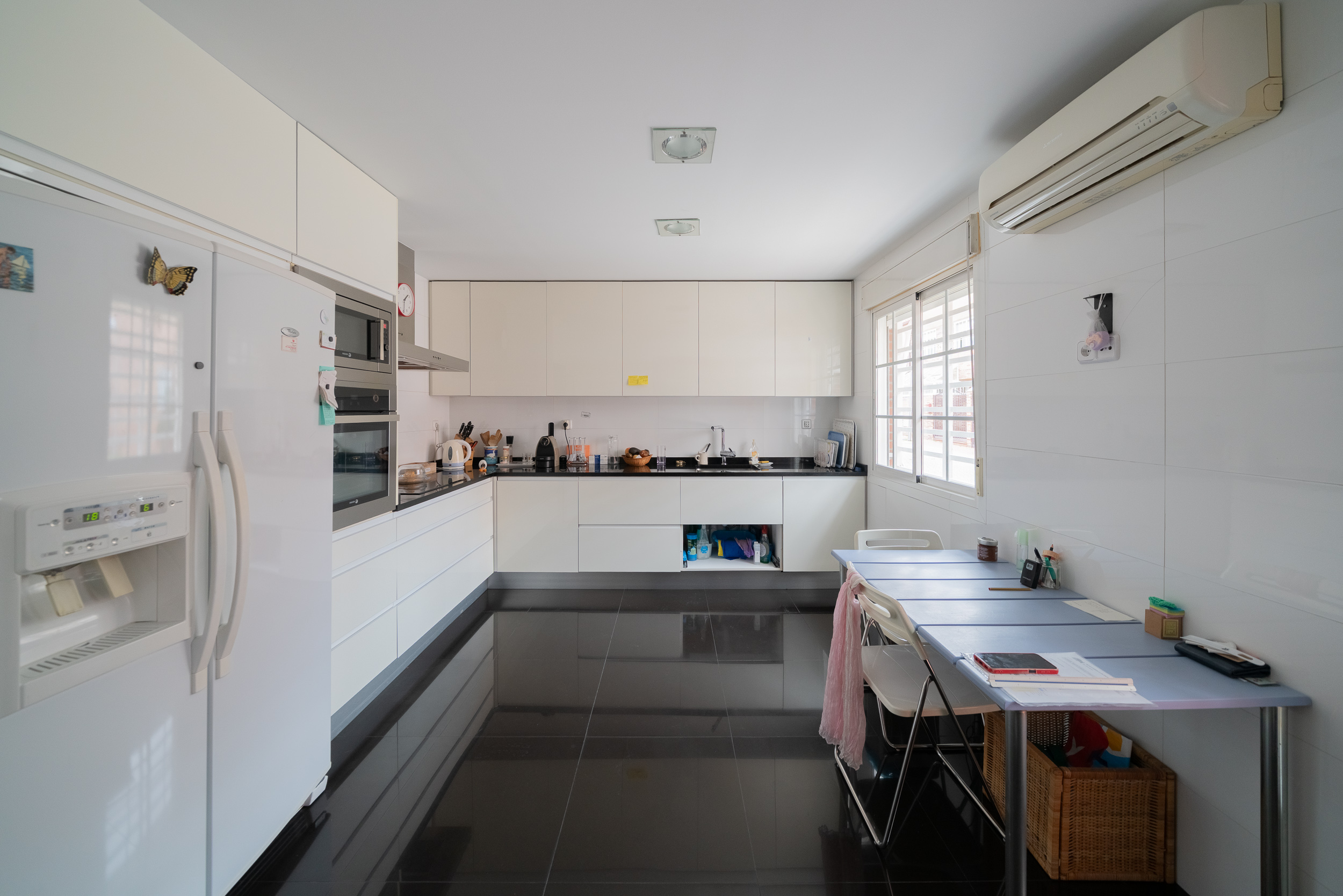 Planta principal: hall de entrada. Aseo de cortesía. Cocina con tendedero independiente y mucho almacenamiento.
