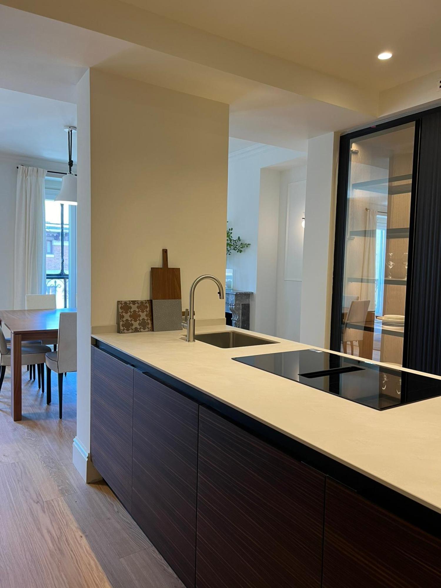 Precioso piso recién reformado, muy luminoso, con tres balcones a la calle en el salón, uno de ellos con mirador. La cocina integrada pero independizada de BANNI y electrodomésticos de alta gama. Consta de tres dormitorios, dos ellos en suite. Se encuentra en un edificio clásico de 1900 rehabilitado. La vivienda destaca por su luminosidad y sus preciosas vistas.