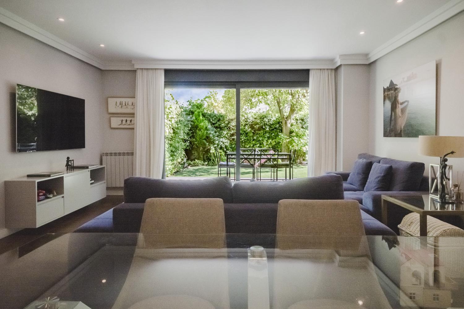 Bonito bajo en muy buena ubicación en Valdemarín, a tres minutos andando de supermercados, farmacia y restaurantes. Es muy luminoso por su orientación Este, La distribución es la siguiente, hall de entrada con armario gabanero que distribuye al salón comedor, a la cocina y a la zona de noche. El salón de buen tamaño y con salida directa al jardín, tiene forma cuadrada de manera que facilita la distribución. La salida al jardín es por un porche solado y a continuación tiene una zona de césped con salida directa a las zonas comunes de la urbanización. La cocina, reformada, tiene una mesa amplia y buena capacidad de almacenaje, desde la cocina accedemos al lavadero que también tiene zona de despensa. En esta zona, se podría ampliar con un cuarto de servicio con su cuarto de baño. La zona de noche tiene tres dormitorios, el principal en suite con salida al jardín. Los otros dos cuartos comparten un cuarto de baño. La casa tiene un trastero de buen tamaño y dos plazas de garaje.