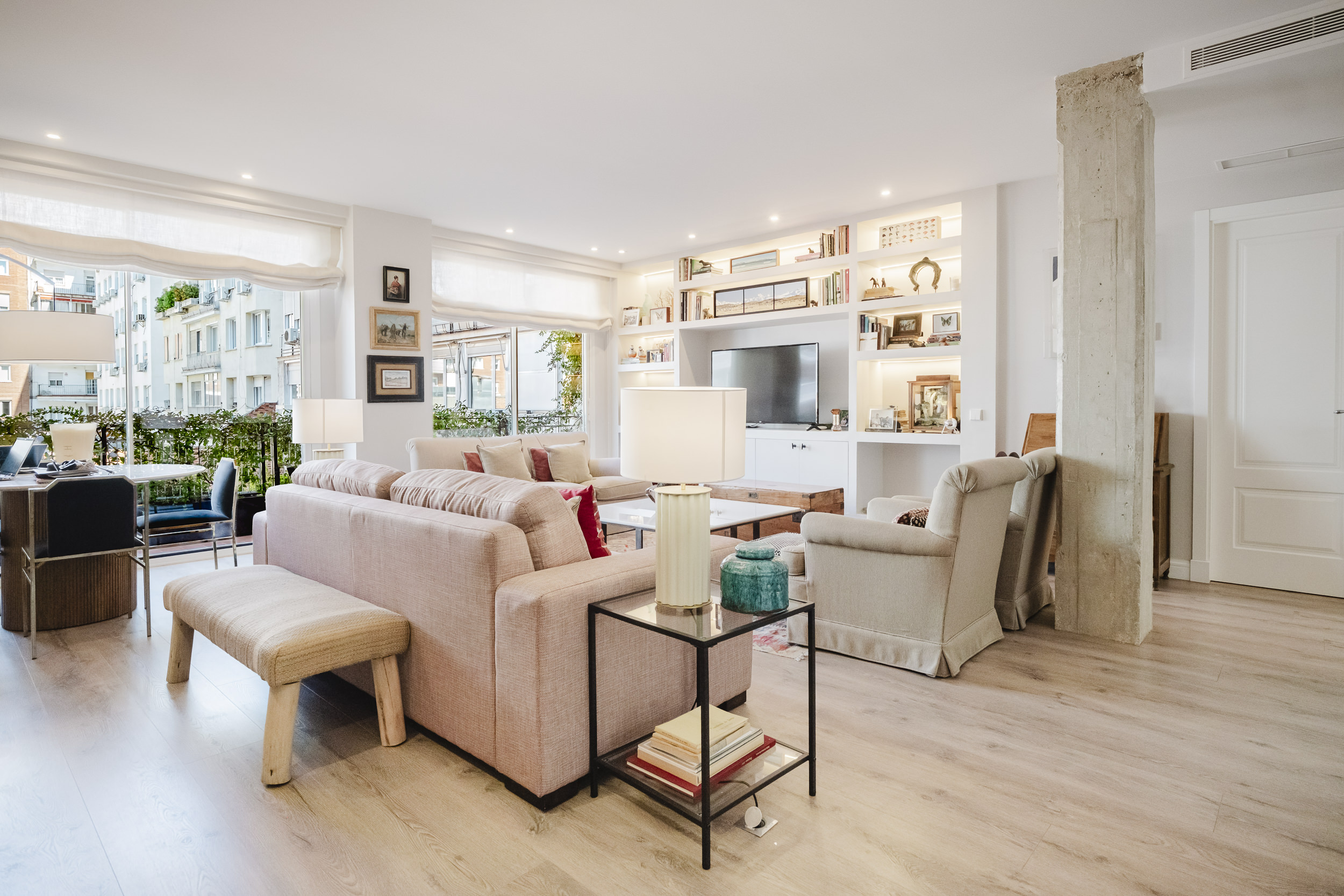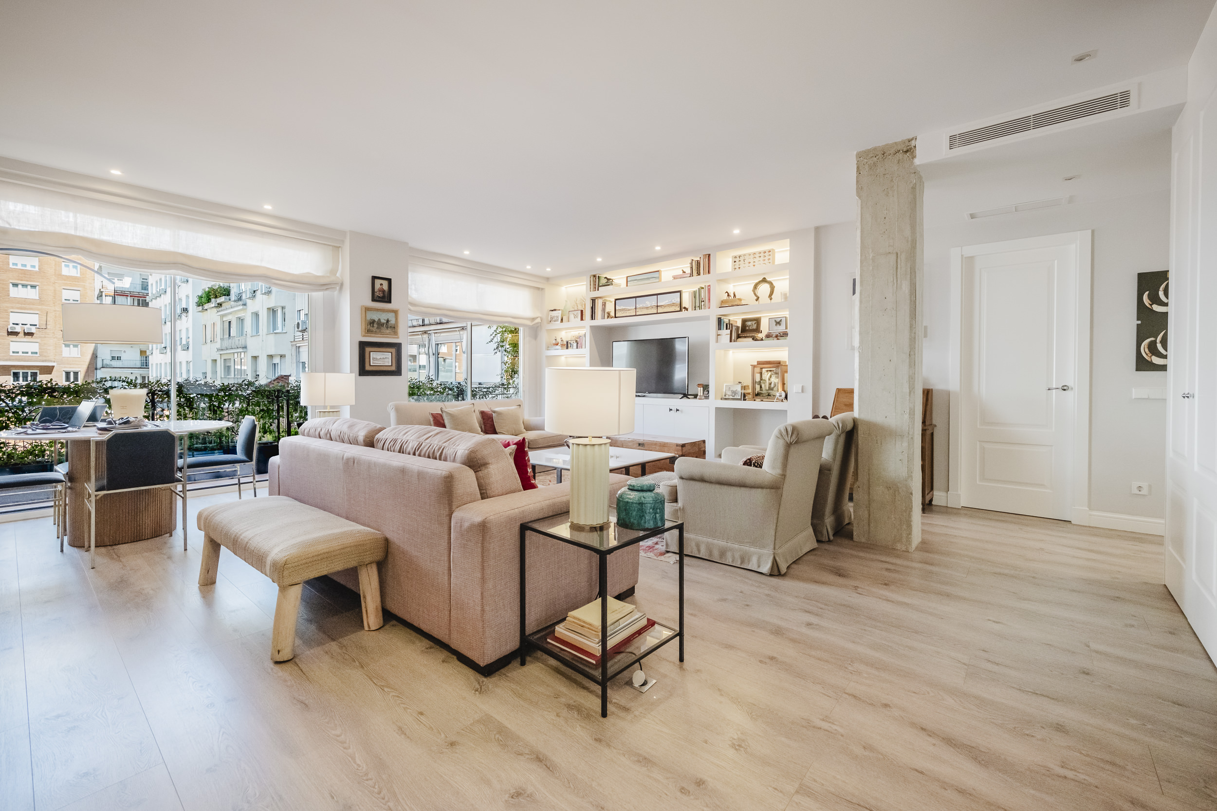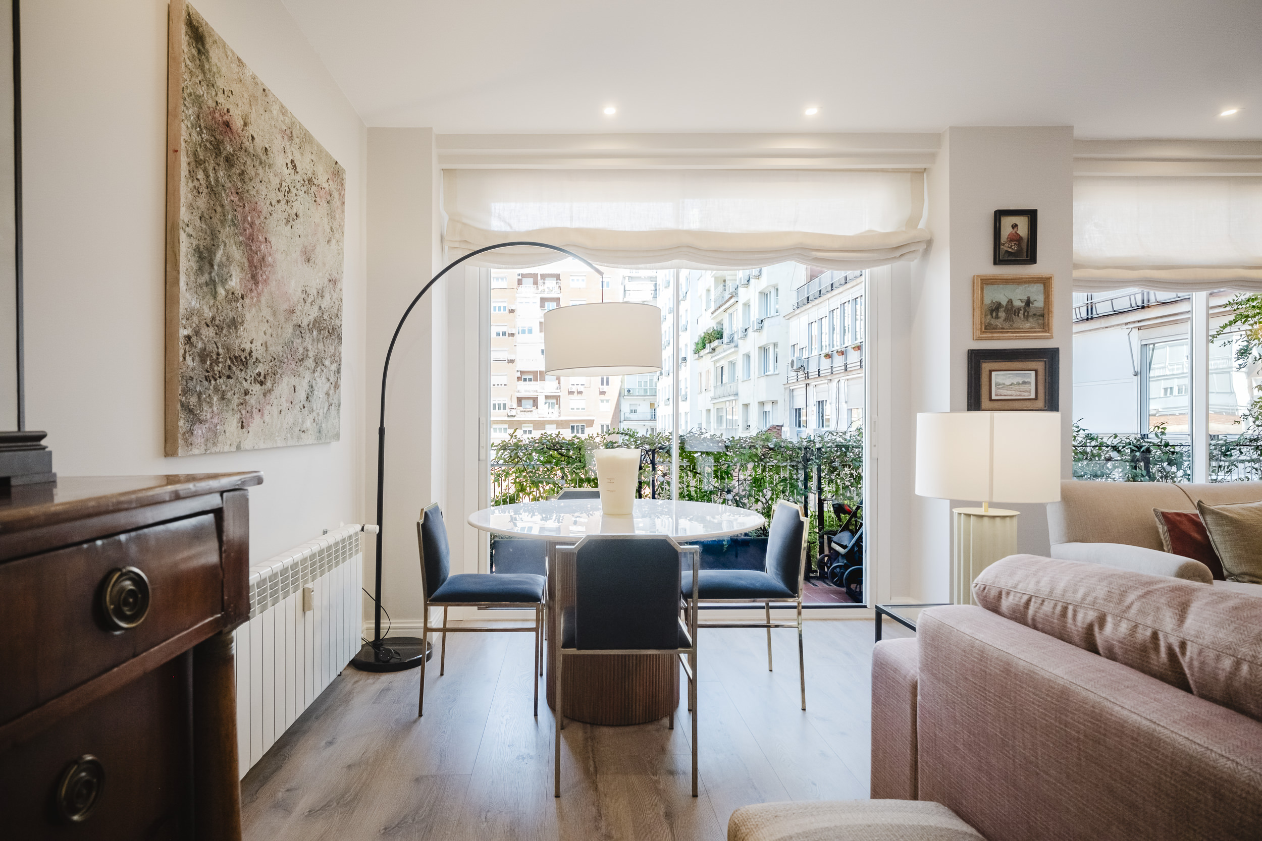 Exclusivo piso totalmente reformado con un cuidado proyecto de interiorismo que destaca por sus excelentes calidades y acabados. La vivienda cuenta con tres dormitorios, dos cuartos de baño completos y, además, dormitorio de servicio con baño privado.