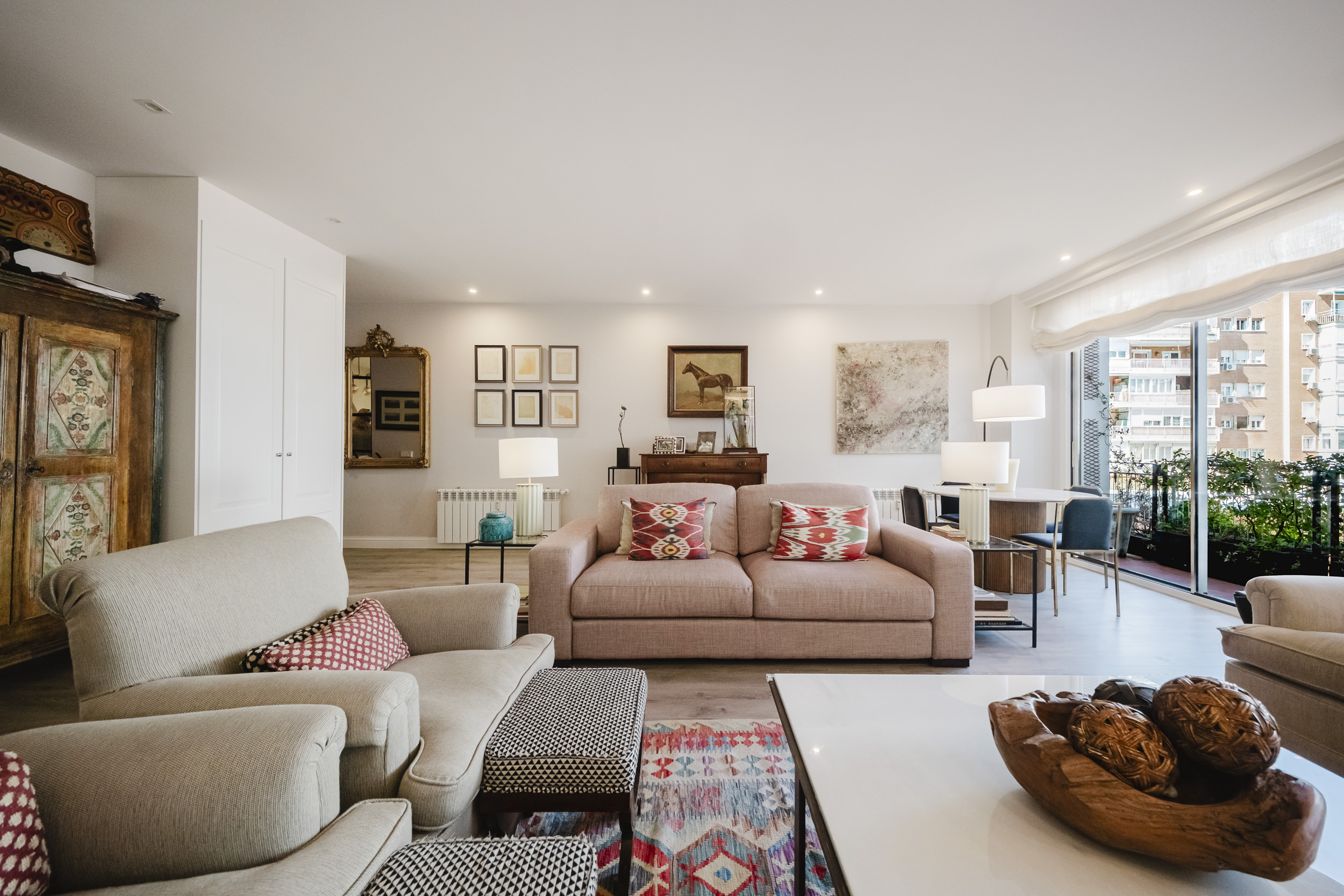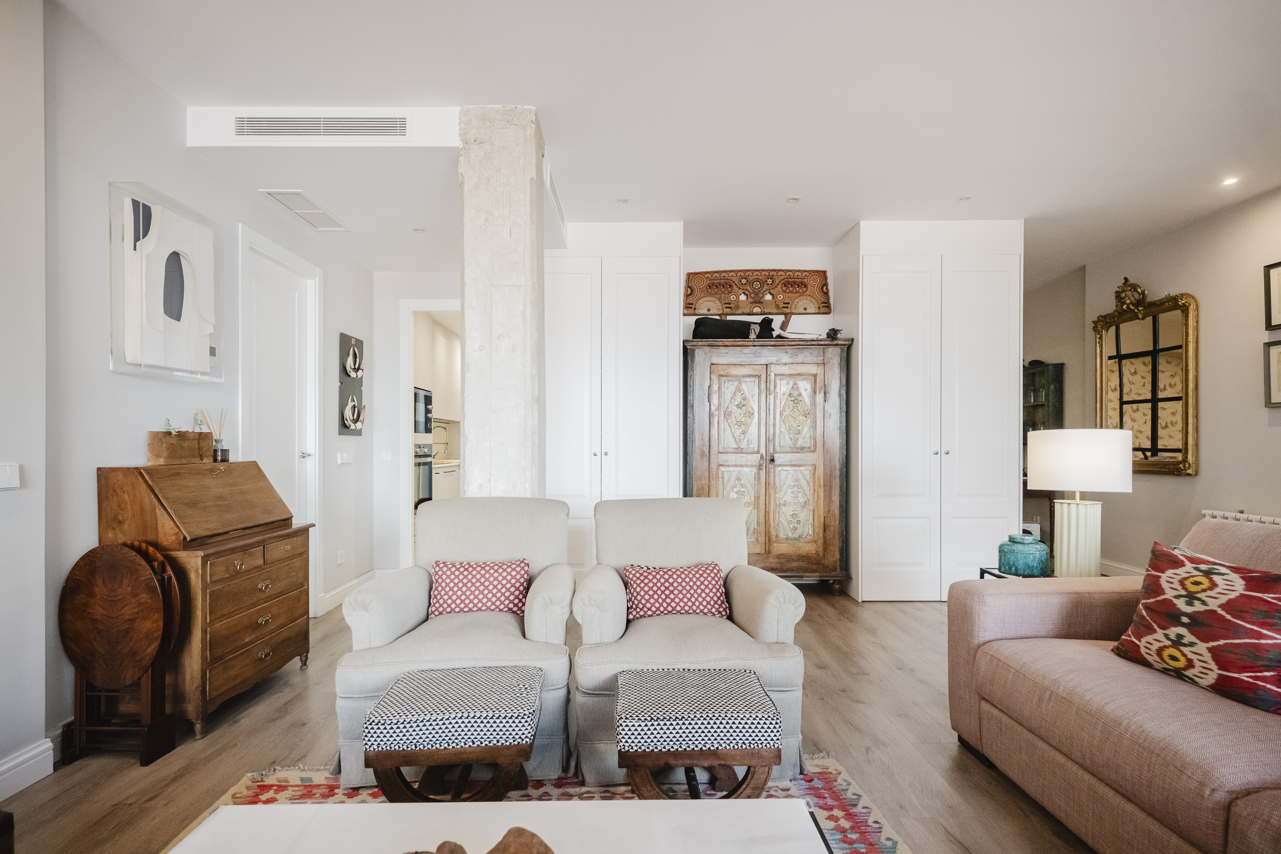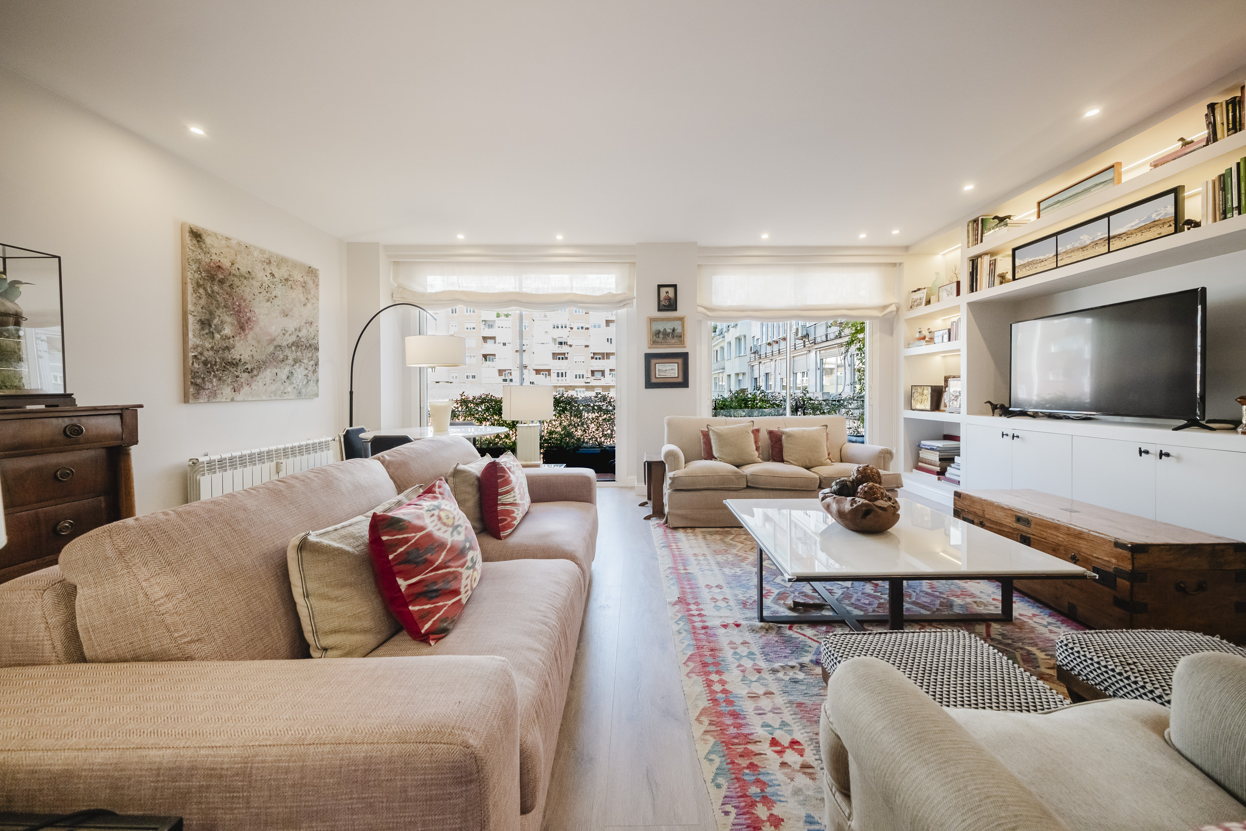 Exclusivo piso totalmente reformado con un cuidado proyecto de interiorismo que destaca por sus excelentes calidades y acabados. La vivienda cuenta con tres dormitorios, dos cuartos de baño completos y, además, dormitorio de servicio con baño privado.