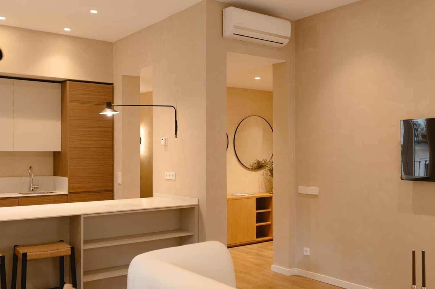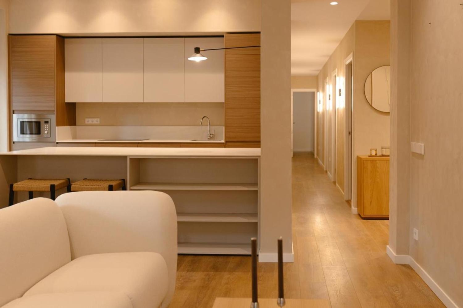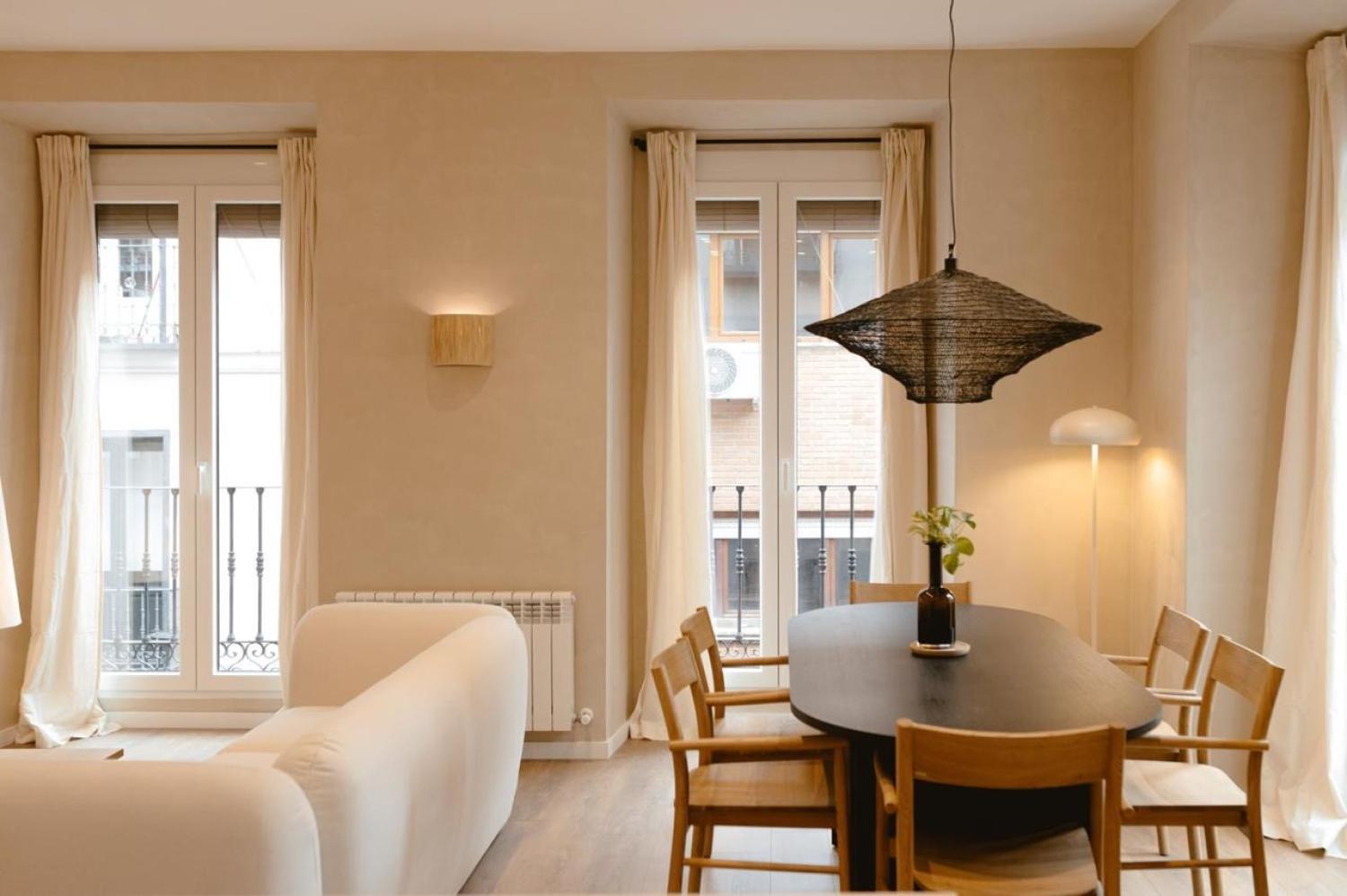 Descubra este excepcional piso de lujo recién reformado en el corazón de Malasaña, donde la elegancia clásica del edificio se fusiona magistralmente con un diseño interior contemporáneo y acogedor. Esta luminosa vivienda de esquina le sorprenderá desde el primer momento con su espectacular salón-comedor de planta abierta, bañado en luz natural gracias a sus cuatro grandes balcones que se abren a la calle desde ambos lados, ofreciendo vistas despejadas del vibrante entorno urbano. Los suelos de madera y la decoración neutral y moderna crean un ambiente cálido y sofisticado, mientras que la cocina integrada, equipada con electrodomésticos de primeras marcas y elegantemente separada por una isla central, combina armarios lacados en blanco y madera con encimeras inmaculadas. La vivienda dispone de tres amplias habitaciones, destacando el dormitorio principal tipo suite con vestidor independiente y baño privado, mientras que las otras dos habitaciones, igualmente espaciosas y luminosas con armarios empotrados, comparten un segundo baño de exquisito diseño. Completando sus prestaciones, el piso cuenta con cuarto de lavado independiente con lavadora/secadora, aseo de cortesía, aire acondicionado central y calefacción individual por radiador. Ubicado en una señorial finca clásica de esquina con ascensor y solo dos viviendas por planta, este hogar representa la perfecta combinación de ubicación, funcionalidad y estilo .