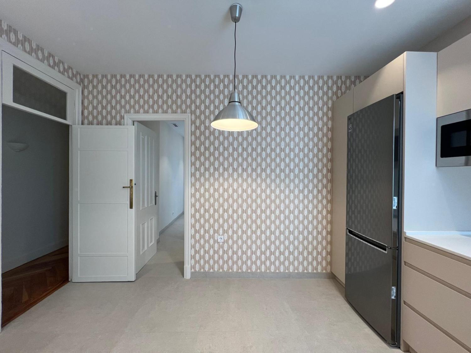 Magnífico piso en edificio de 1930, completamente exterior, con gran altura de techos. A la vivienda se accede a través de un amplio hall, con ventana plomada. Tiene un gran salón, con estancia independiente para una sala de estar/biblioteca o comedor independiente. Todo ello accesible a través de preciosas puertas de cristal. Cuarto de baño de invitados. El dormitorio principal tiene muy buen tamaño, tiene el baño incorporado y un gran vestidor. Dos dormitorios adicionales comparten un cuarto de baño. Uno de los dormitorios tiene un vestidor. Dormitorio y baño de servicio. Cocina independiente equipada con todos los electrodomésticos y gran lavadero independiente con gran capacidad de armarios. Gran plaza de garaje. Calefacción central. Aire acondicionado frío/calor por conductos en todas las estancias, marca Daikin.