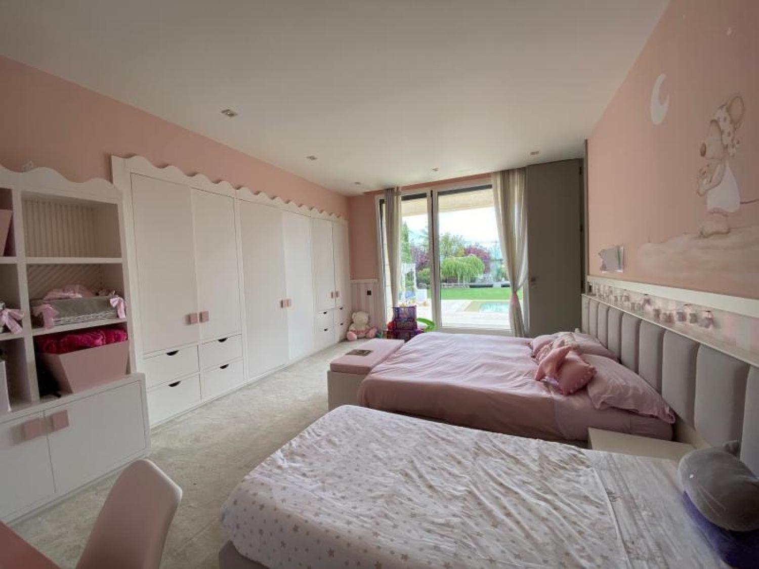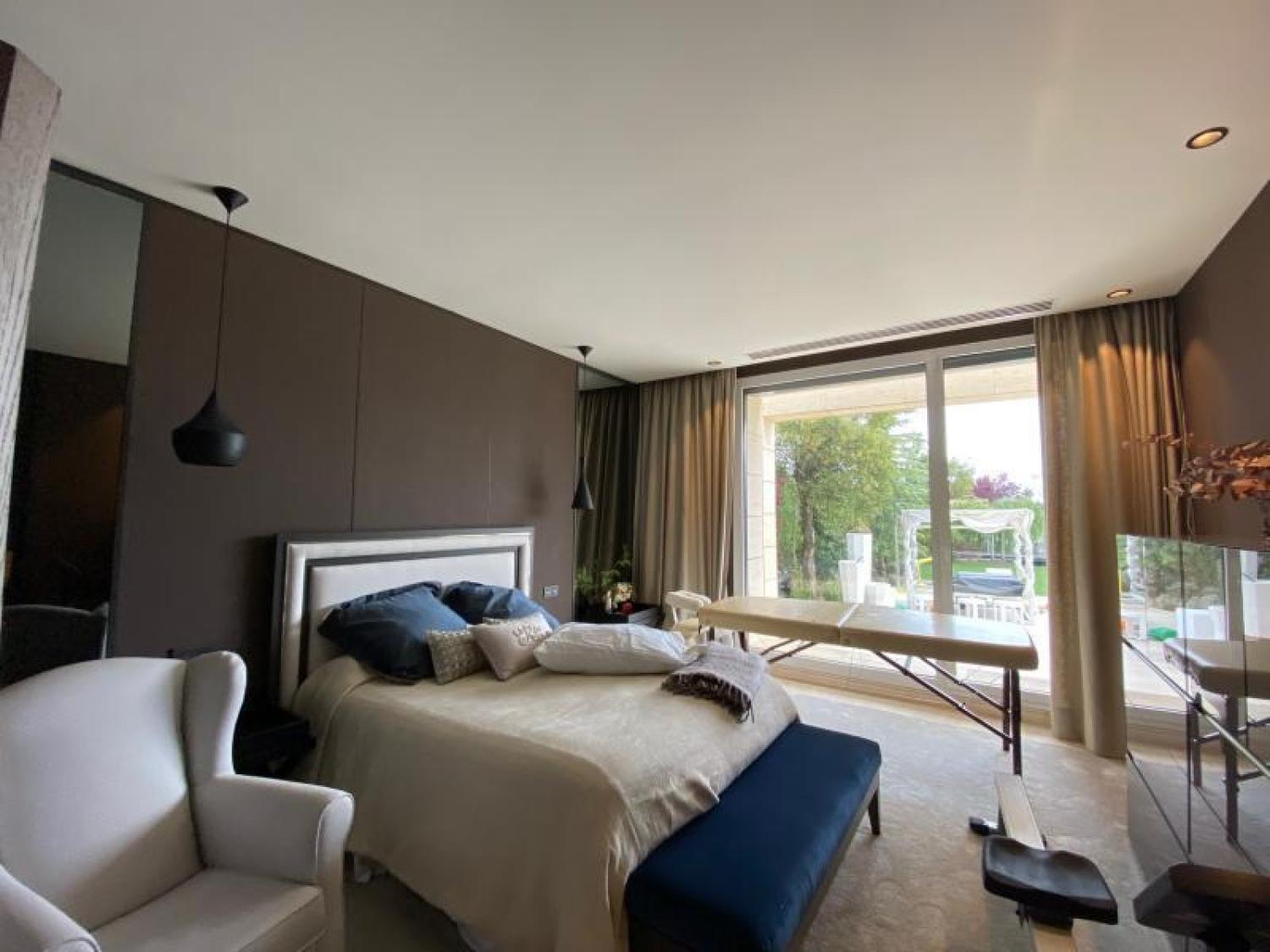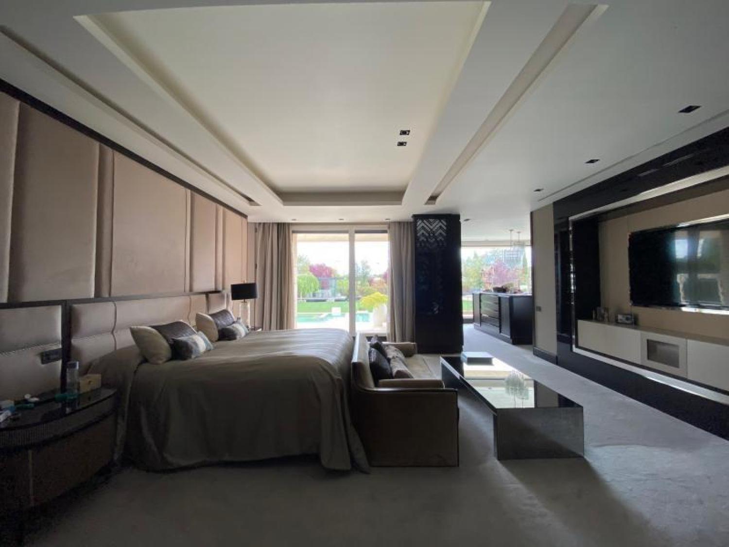 Maravillosa casa independientede una sola planta situada en el Paseo de los Lagos, en la mejor zona de la Finca. Una Urbanización de 125 hectáreas con maravillosa vegetación, muy cuidado paisajismo y con seguridad de control de acceso y servicio de conserjería. La propiedad tiene una parcela de 3.200 m² y la arquitectura es de lineas rectas y modernas, materiales nobles. La casa consta de una magnifica zona de recibo, un gran salón con techos de doble altura y salida a un maravilloso porque abierto al jardín que tiene una casita sobre un lago pequeño para utilizar tipo cenador de verano o como Spa. Tambien tiene un esplendido jardín con una zona de recreo para niños. Junto al salón, nos encontramos una gran sala, que podria ser el comedor (ya que esta contiguo a la zona de servicio y cocina) pero que en éstos momentos están utilizandola como sala de juegos para los niños. tambien esta sala tiene acceso directo al jardín. En la zona de dormitorios nos encontramos con 6 dormitorios tipo suite, todos ellos con vistas y acceso al jardín. La suite principal cuenta con dos grandes vestidores con vistas al jardín. Los otros cuatro dormitorios son todos muy amplios y con estupendos vestidores y baños. Ademas de éstos, encontramos un gimnasio totalmente equipado con su baño. Junto al gimnasio, hay otro dormitorio o sala polivalente que podria convertirse en pequeño apartamento independiente. La cocina totalmente equipada, fue ampliada para que tuviera un buen planchero y zona de servicio con dos dormitorios y un baño. Pegado a la cocina encontramos un agradable comedor de diario La casa está totalmente equipada, magnifico sistema de música, calefacción por suelo radiante, aire acondicionado en todas las estancias y sistemas de seguridad. El garaje tiene capacidad para cuatro coches grandes y otra zona cubierta para otros dos coches. La construcción es de 2008 pero se reformó y amplió en el 2015 paisajismo del 2020 Comunidad de propietarios 1.525€ IBI 3.671€